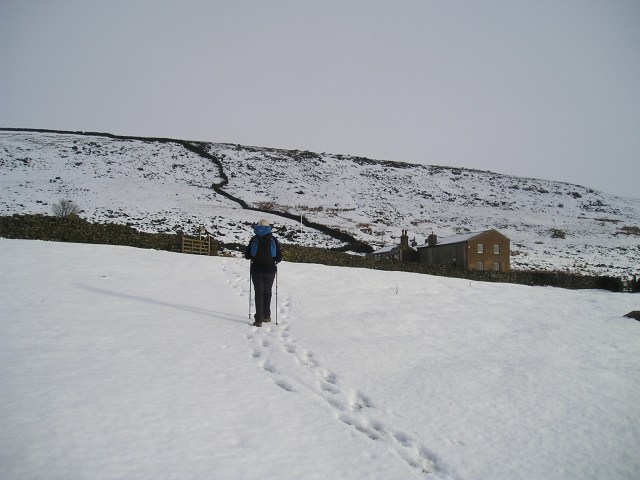 6th January 2011 – I’m usually a sucker for a good weather forecast, so when both the Met Office and MWIS (Mountain Weather Information Service) agreed on a ‘shiny sun’ symbol from noon onwards, a walk up a hill was on the cards.  There had been snow the night before, but nothing extreme, so Great Whernside was chosen as being a good leg stretch.  The car park at Kettlewell was icy enough to require care, but the path up to Hag Dyke was easy going with only a little fresh snow.