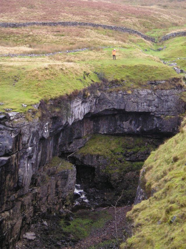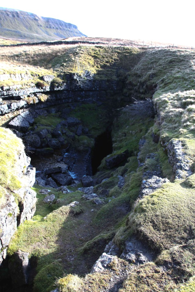 Despite it being in the middle of the week, and the weather being on the cool side, the shelters on both side of the summit wall were occupied, so sandwiches were delayed until we reached Hunt Pot on the way down. I frequently get confused by the proximity of Hunt Pot and Hull Pot, often getting the names mixed up. Well, Hull Pot is the huge, spectacular hole that fills up like a bath when it rains hard, and Hunt Pot is the one that thousands of people walk past every year, despite being within 50 metres of one of the busiest paths in the Dales.