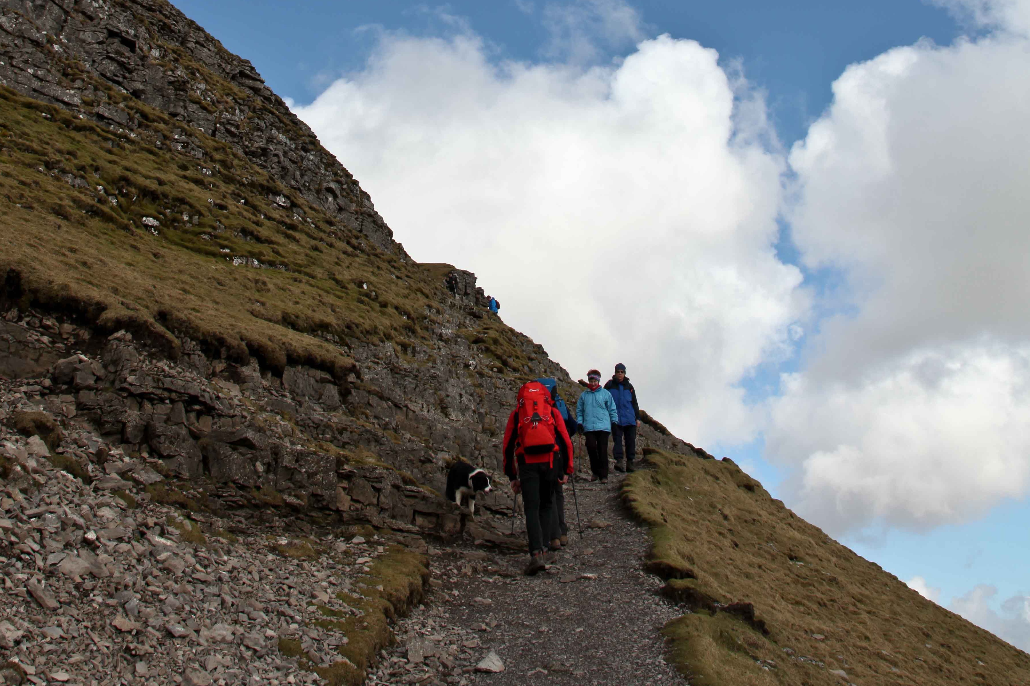 These days John is much more likely to shoot a polar bear with his camera, with which he is equally skilled. This makes him a useful addition to any hill day, as he takes care of the photography. So, with the addition of Chris (‘me missus’), and “Mist” the Border Collie, we had a team. I’m a creature of habit, and so I suggested my favourite route – Out by Brackenbottom scar then up the craggy south side of Pen y Ghent.