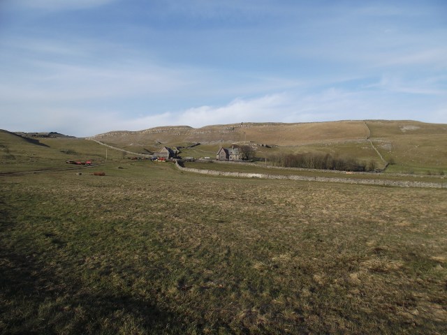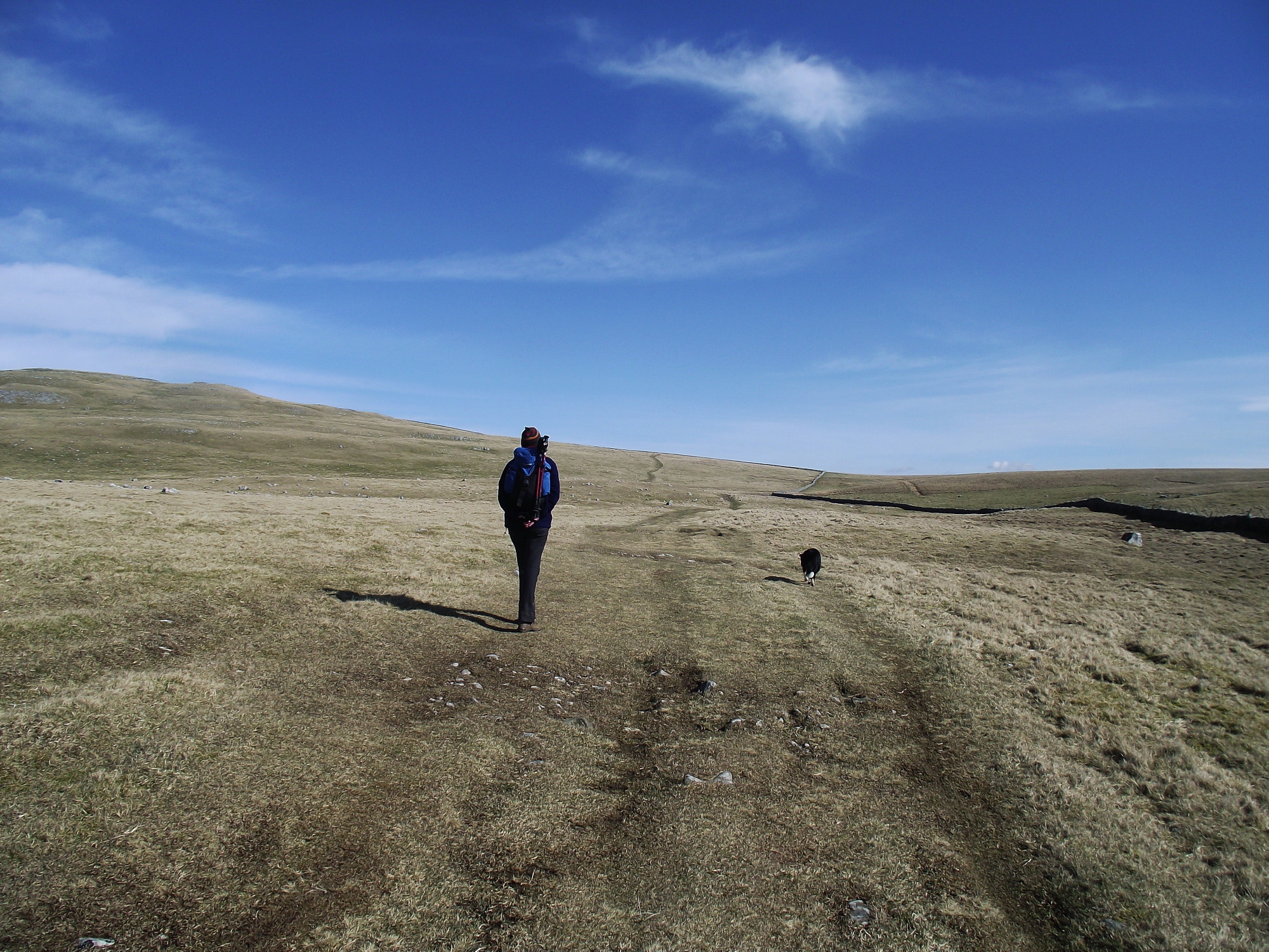 Having left it a bit late for the pub, there was no point in lingering, so we gained height fairly quickly on The Monks Road, once used by the monks of Fountains Abbey travelling to the fisheries at Malham Tarn. The approaching weather front suddenly had a change of heart and we finished with more blue skies, passing limestone crags and the lonely Middle House Farm.