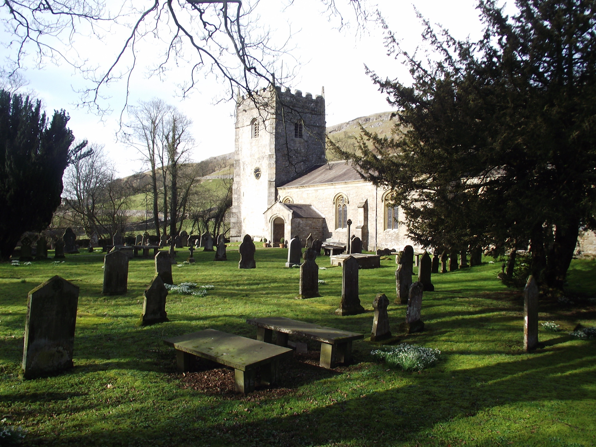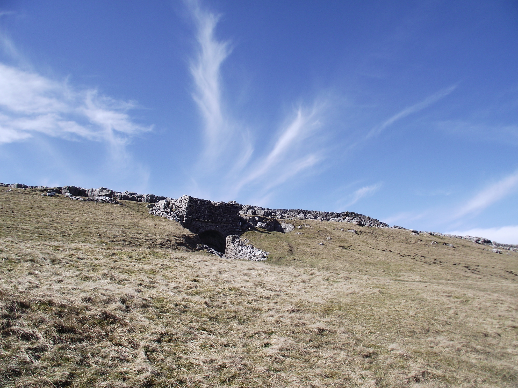 The day dawned fair as promised. Because of the wide-open spaces, a fair day in the Yorkshire Dales usually means long views and big skies. As the morning progressed we had the first signs of an approaching weather front, indicated by high cirrus clouds, but the day stayed fair. We passed an old limekiln before dropping down to Littondale where we followed the valley to the village of Arncliffe, with its attractive church, functioning ‘stocks’ on the village green, and The Falcon pub.