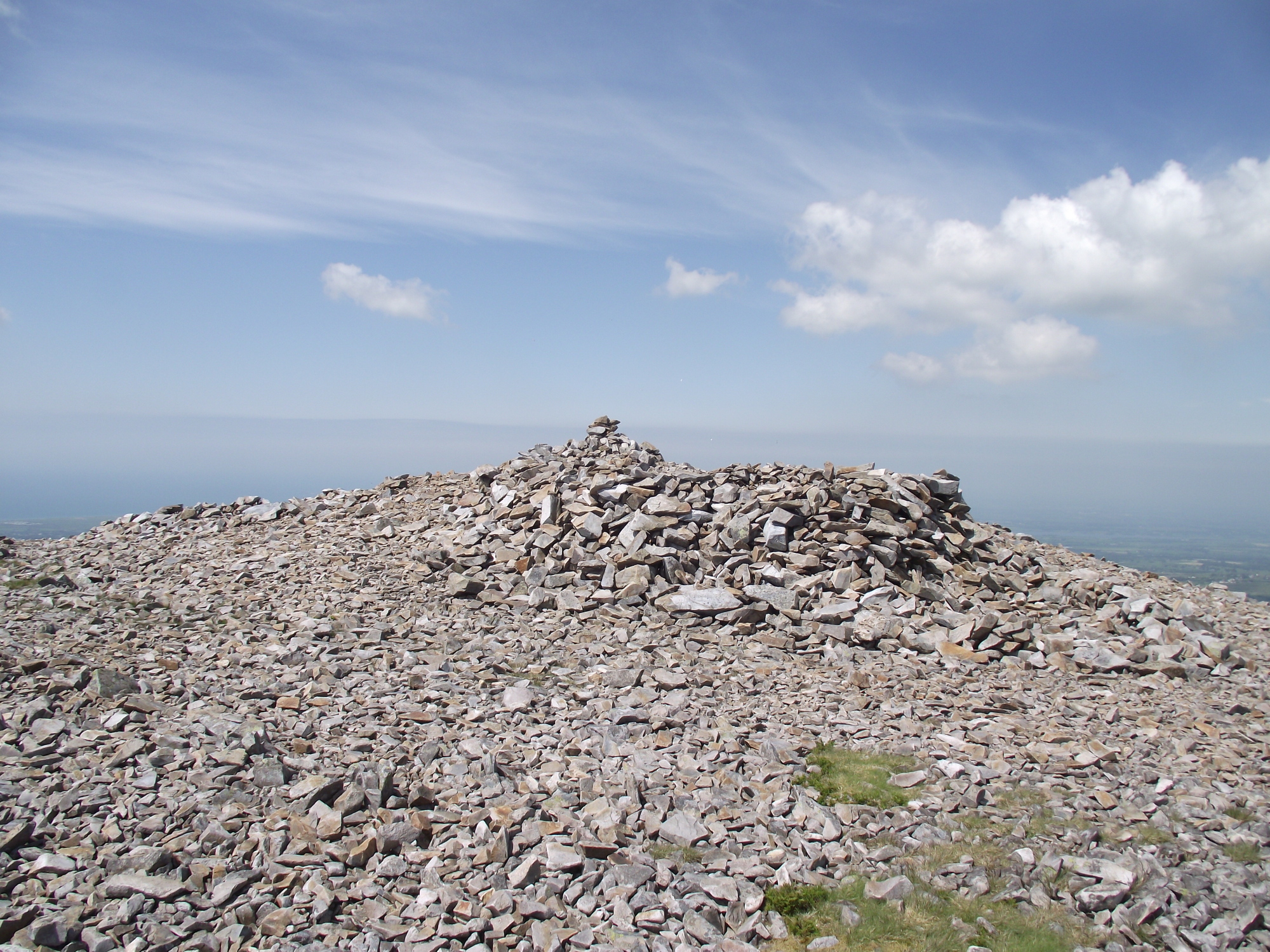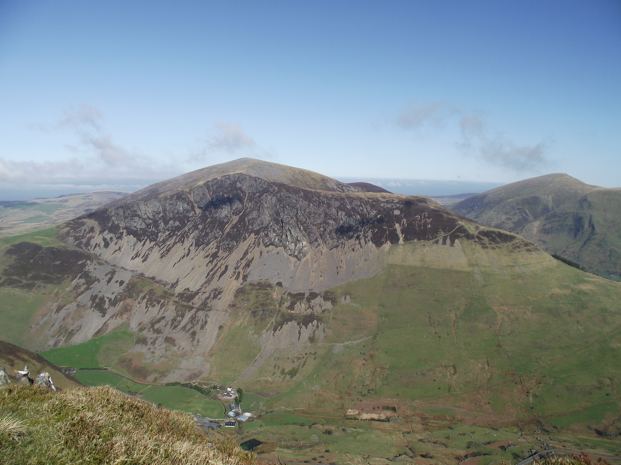 A broad ridge leads round in a wide arc with some long drops on the left down to the Nantlle road.  Not far beyond is the summit, with the remains of an ancient burial cairn, its stones now plundered by walkers to build shelters.  Pick a good day, and the views are outstanding.  Being a linear route, our return route was familiar ground, but the views weren’t – the constantly changing outlook made the route look like a completely different walk.  And being a relatively short walk, it didn’t seem long before we were back at the waiting Cwellyn Arms.