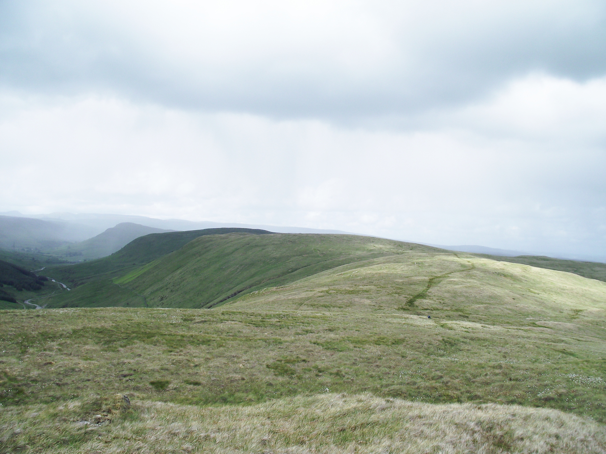 No mist on this walk though, apart from ‘Mist’ our Border Collie. We set off from Roundthwaite near Tebay and took a gently rising path up to Roundthwaite Common. From there it was big skies and easy walking to Winterscleugh then on to Whinash, passing en route the small unnamed lump at 454 metres height that had nearly caught me out all those years earlier. From there we headed for the intriguingly named “Breasthigh Road”. In places the track has been washed out by storms, and at times we walked in the track, not on it!
