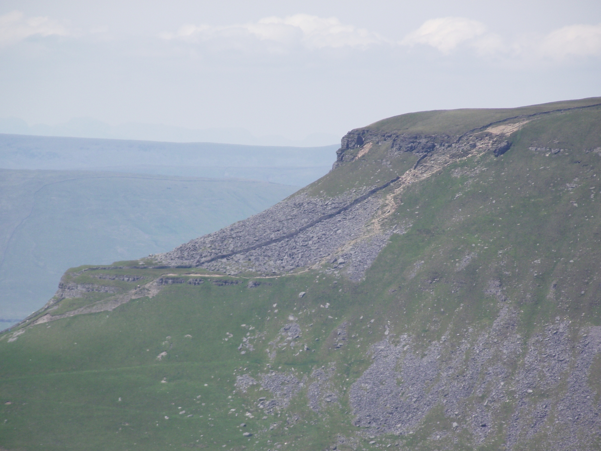 However, the best of the views were behind us as we walked this section, namely the view back to Pen y Ghent. I’m more used to seeing Pen y Ghent from Horton in Ribblesdale, and the less than familiar view towards the east side of the mountain provided constant interest – the eroded path up through the crags of the South Ridge was clearly visible, even without using zoom on the camera.