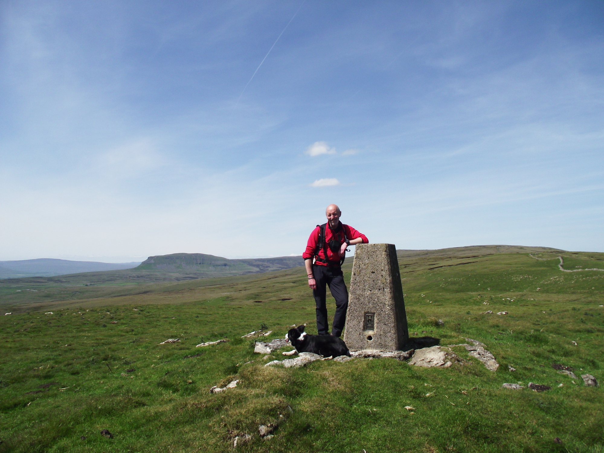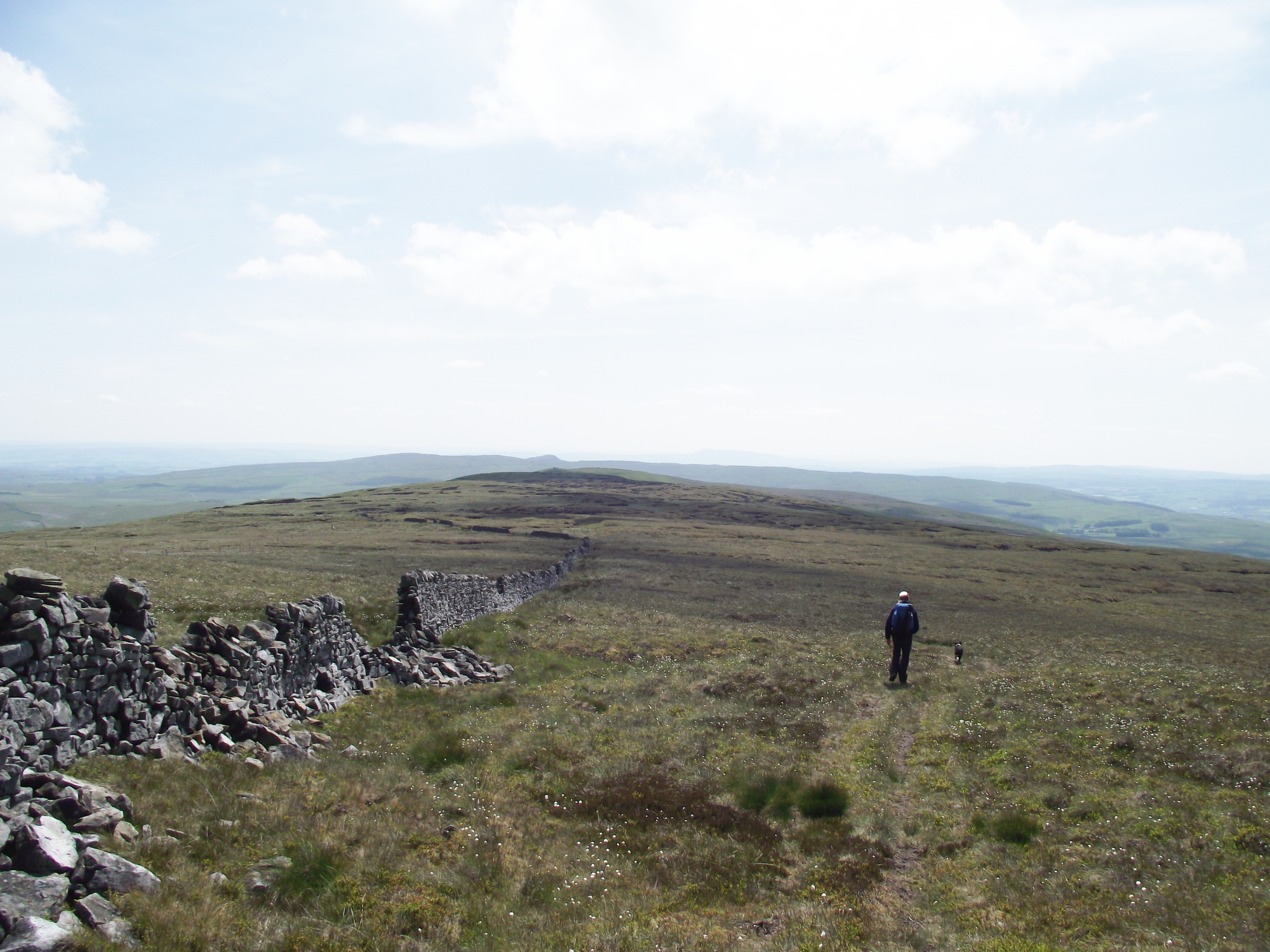 Here the afternoon was livened up somewhat when I found that the fence was electrified! A crossing point nearby saw us over without further incident, though we thought it wiser to pick the dog up and pass her over. From the fence it was all downhill back to the car. The last time we were here we hadn’t seen much at all, but today the views stretched northeast to the hills of Swaledale and southwest as far as Pendle and beyond, but the stars of the show were, as usual, the ‘Yorkshire Three Peaks’ – Ingleborough, Pen y Ghent and Whernside.