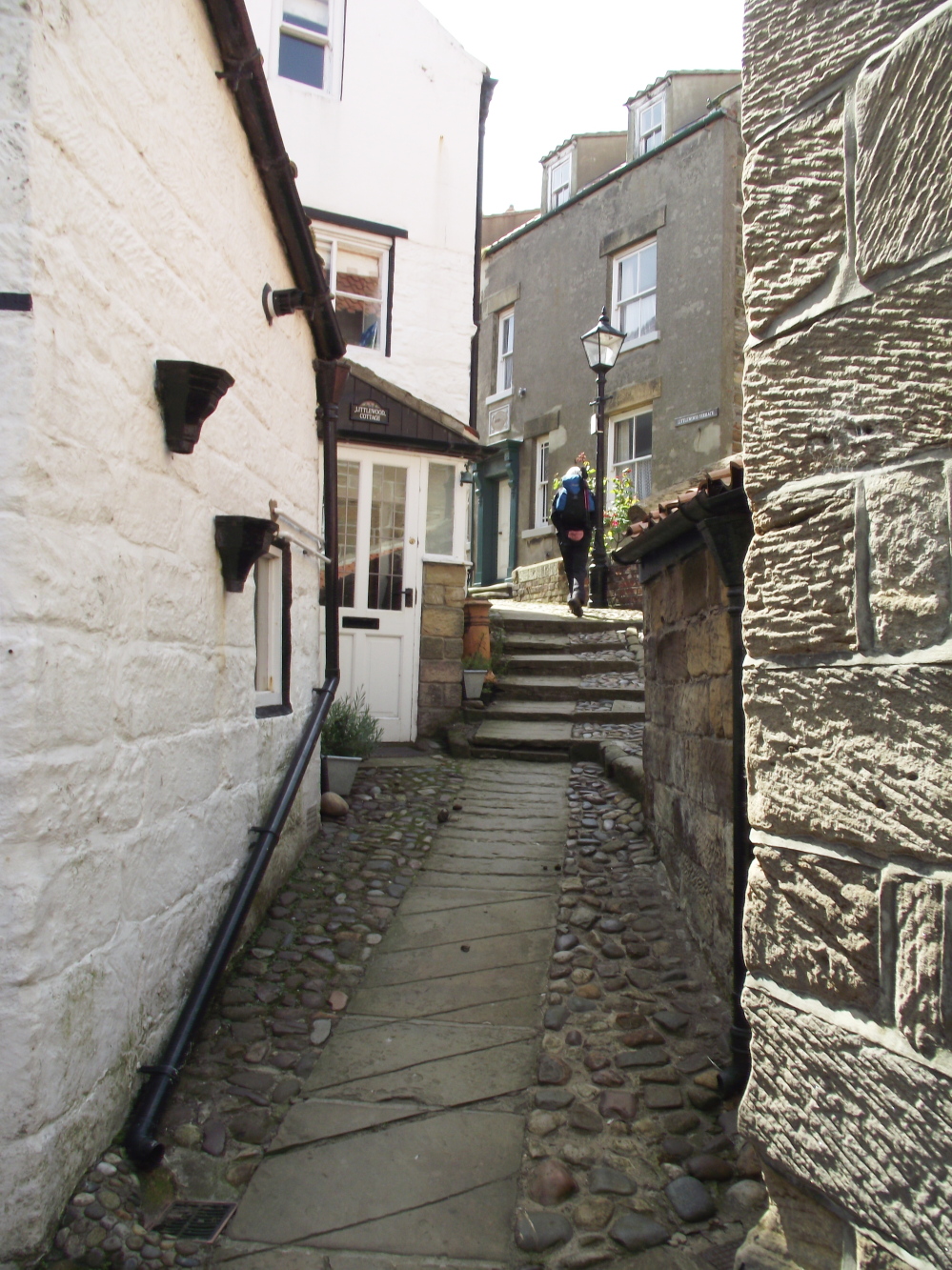 The old village of Robin Hood’s Bay almost tumbles downhill to the sea, and at high water you can just about step off the main street into salt water. The old odd-shaped houses nestle next to one another, separated only by narrow ‘ginnels’ or passageways; include the red roof tiles to the mix, and the village looks as though it should be in Italy, not in no-nonsense Yorkshire. Unfortunately, the spin-off from looking picturesque is that many of the cottages are holiday homes, and in winter the place is a ghost town.