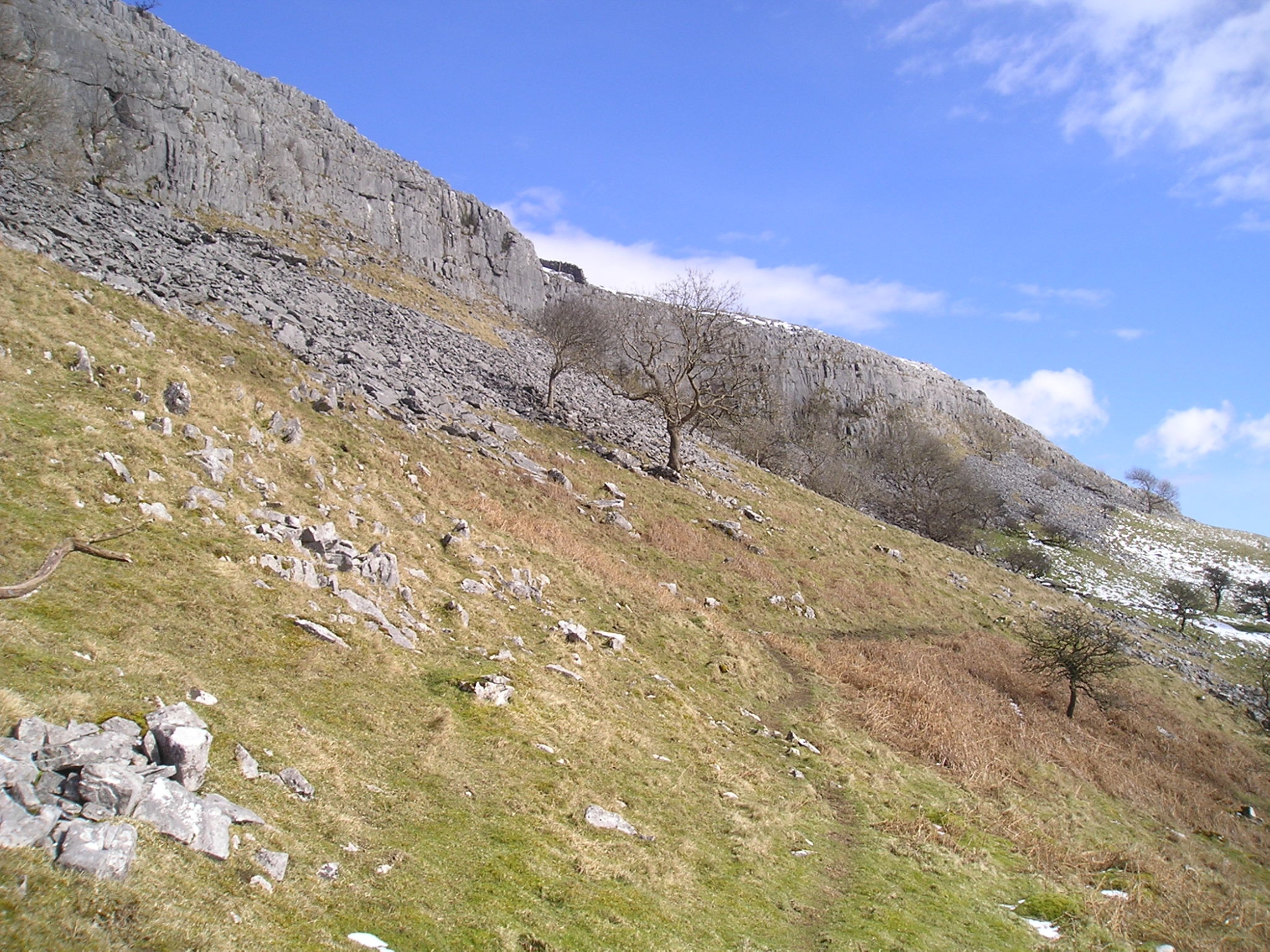 You can’t see pot scar from the road – If you find Feizor on the map, follow the footpath heading due east and Pot Scar is just to the north of the path, about 700 metres from Feizor. Typical limestone crag, bl**dy vertical!! Start doing pull-ups 😀