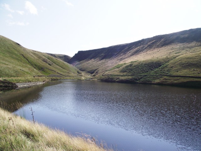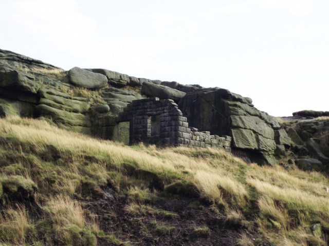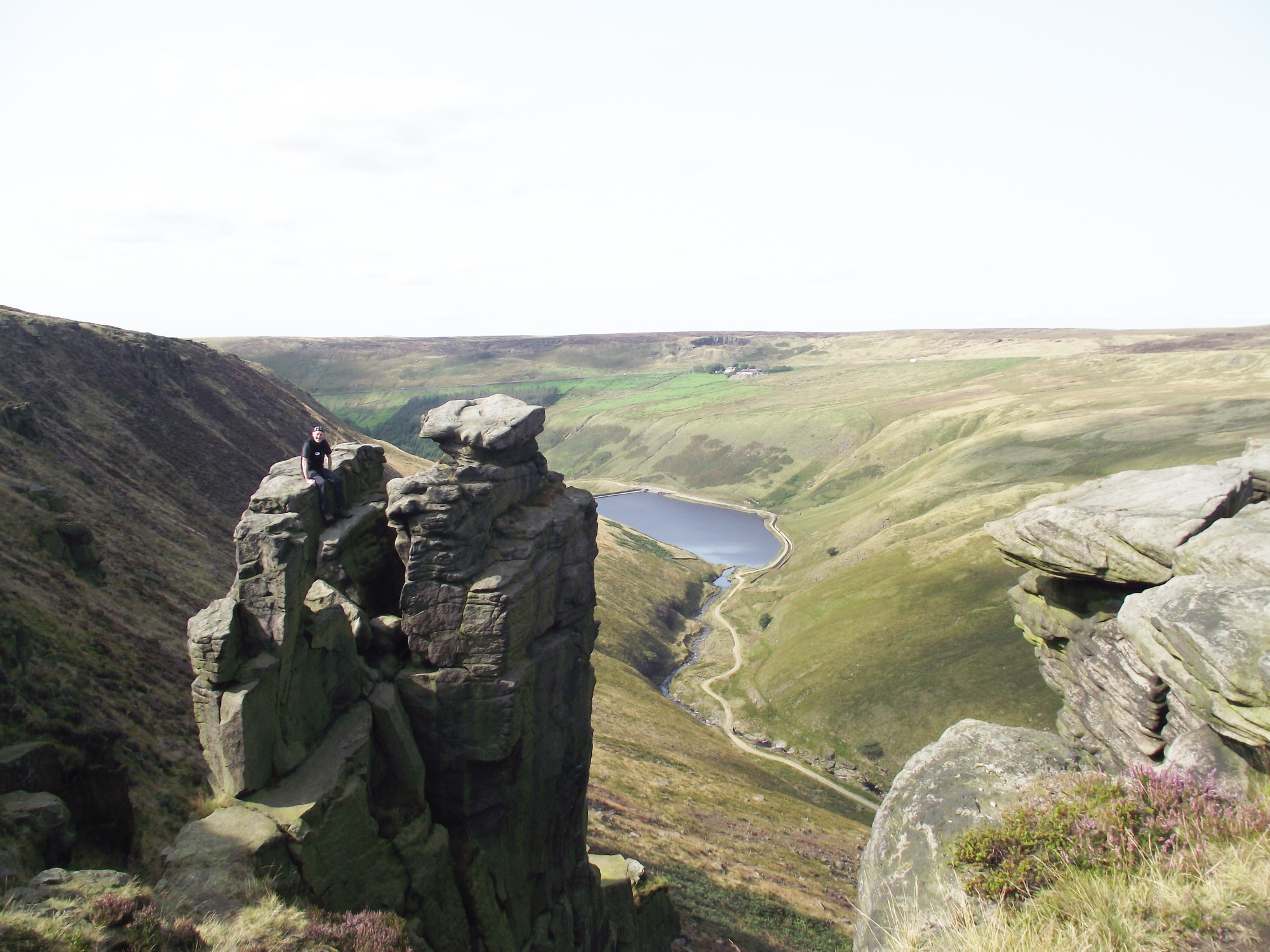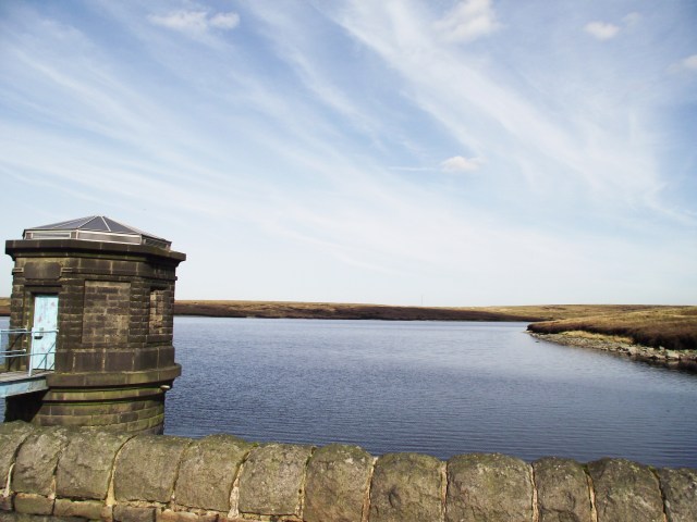 Following the gritstone edges had two advantages. Firstly we avoided the worst of what appeared to be a full-blown Pennine peat bog on the higher ground to our left, but the main benefit was the views across the moors and down to the valley. We carried on past the remains of a stone shooting hut at Bramley’s Cot before ending up at Chew Reservoir, said to be the highest reservoir in England.