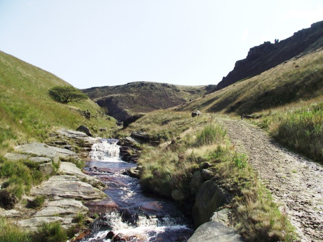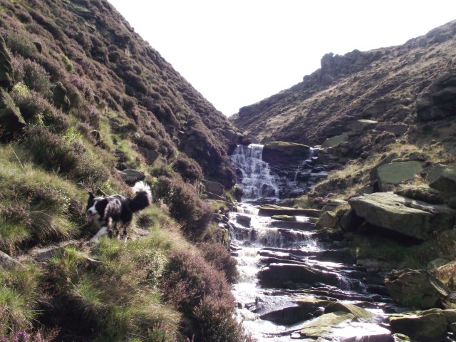 We put these grim thoughts behind us as we walked by Yeoman Hey and Greenfield Reservoirs, before passing below the impressive gritstone outcrop of the Raven stones on our way to the delightful Birchen Clough. A narrow path clings to the hillside, not far above the stream with its deep pools and cascades. It became obvious that a stream crossing would be required, and right on cue the path led down to the waters edge