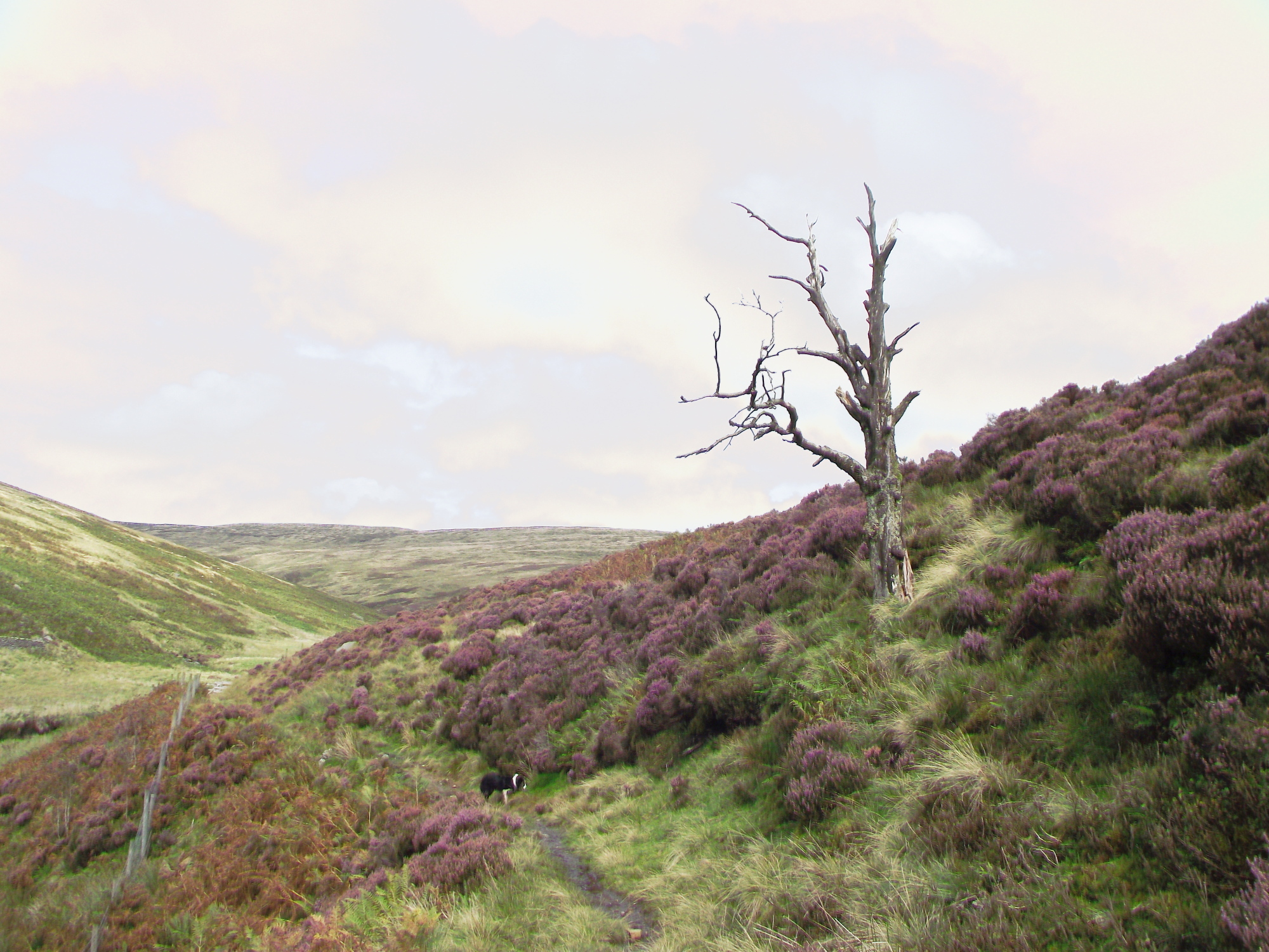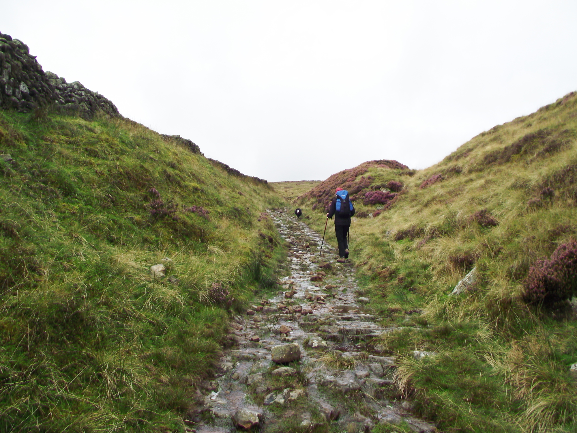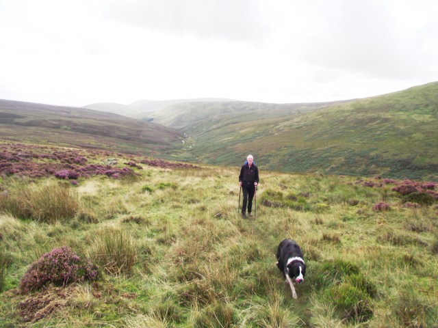 Old instincts surfaced on this section of the walk. ‘Mist’, our Border Collie, is trained to be safe near sheep, cattle and horses, but a couple of hundred years of selective breeding by shepherds leaves a legacy, and several times she went into an instinctive ‘collie crouch’, giving the sheep ‘eye’ – the sheep, likewise, obeyed an older instinct to herd together when faced by a ‘wolf’! A quick word of command reminded the dog that her herding instincts are now redundant.