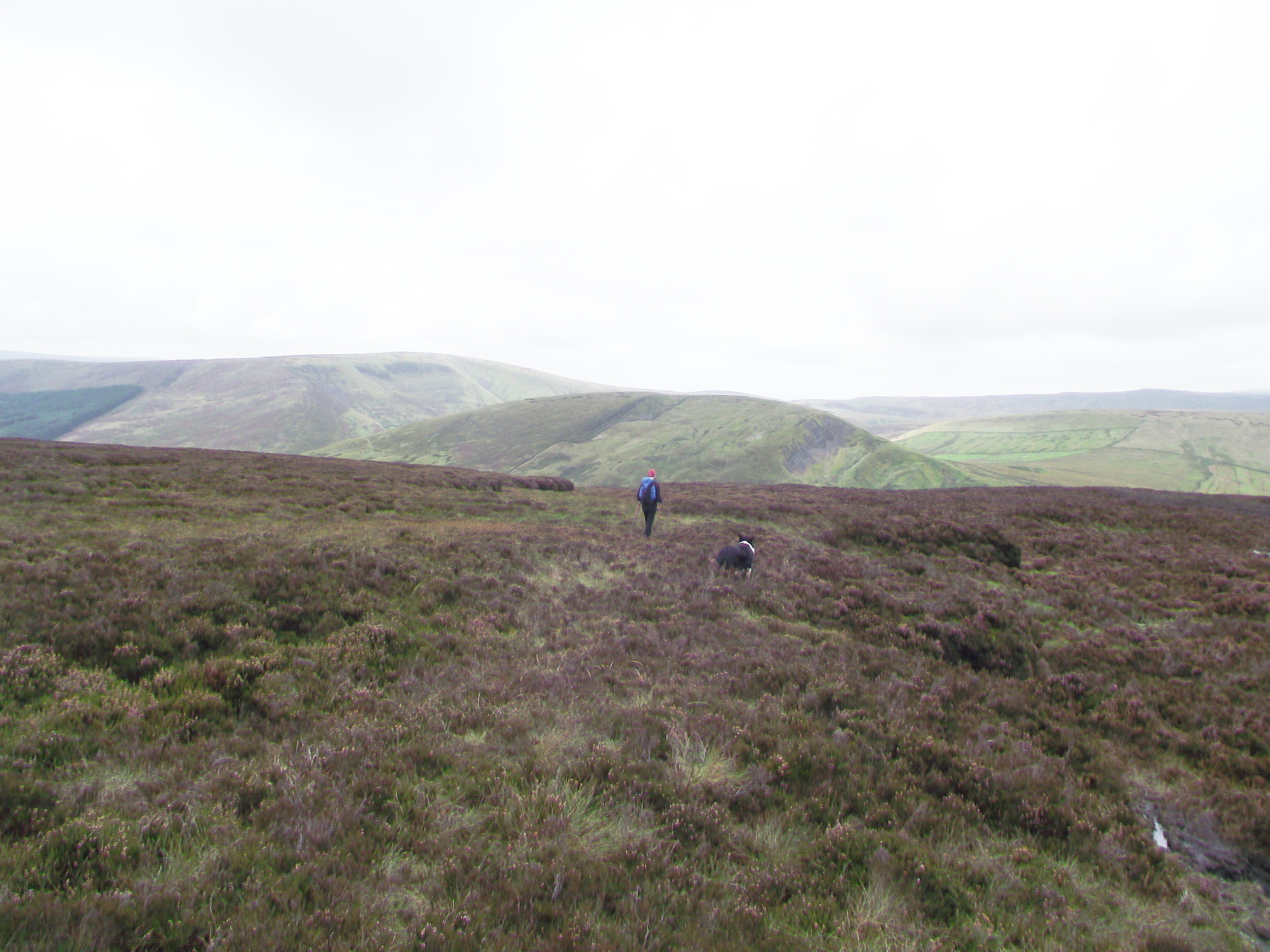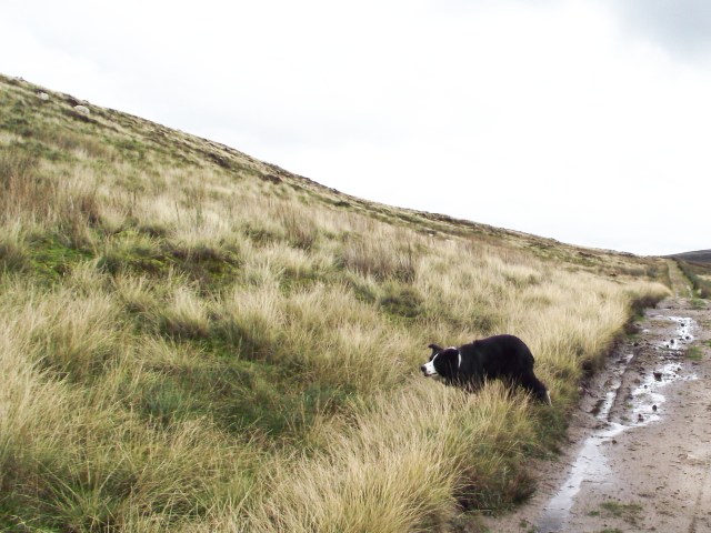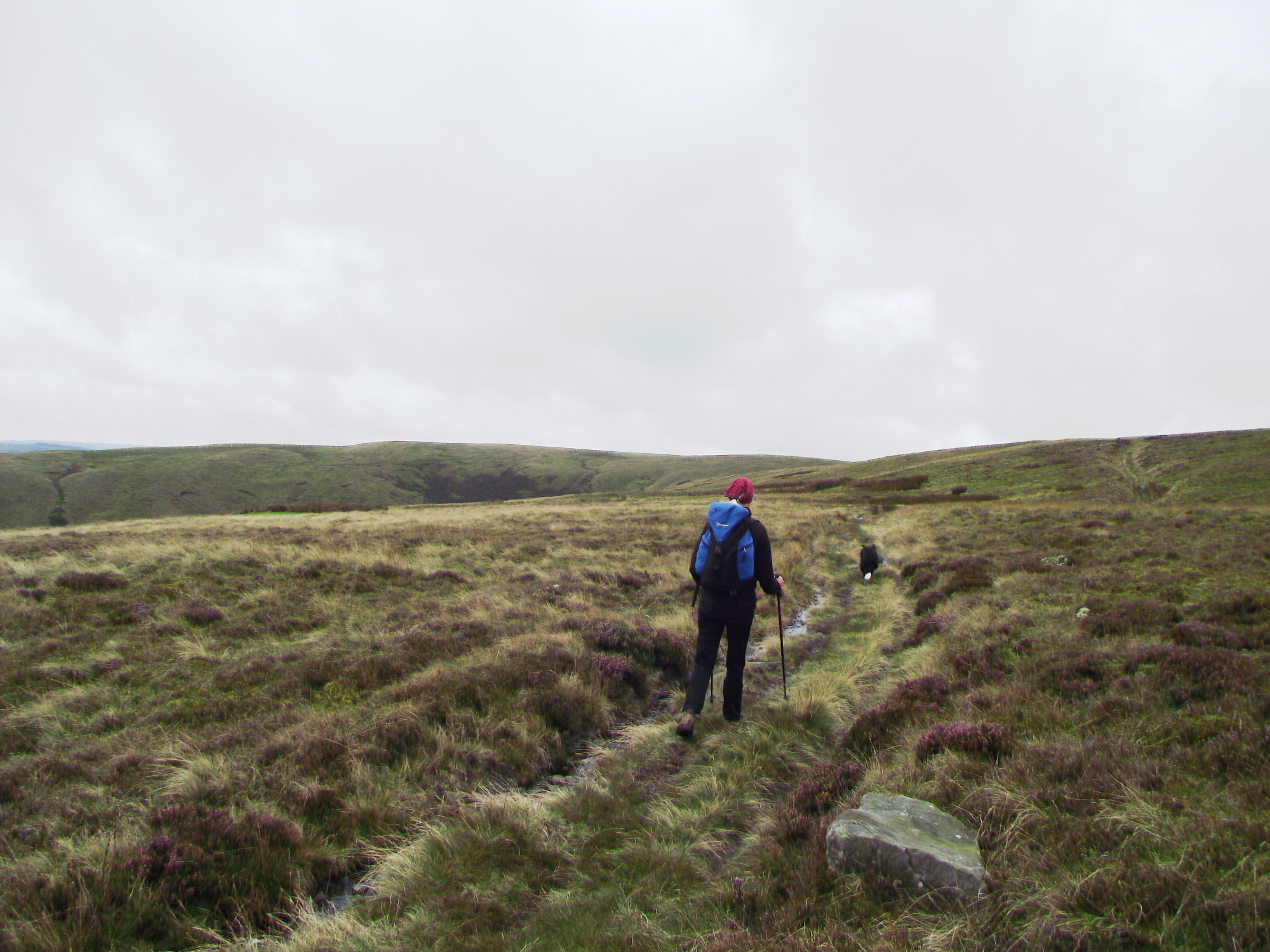 It was about time I returned to unfinished business in Bowland, so Chris and I (and t’dog of course) set off to Slaidburn to fill in a gap in my Bowland experience. We started up over Dunsop Fell, heading for the lonely farm at Whitendale, a short distance but over typical gritstone moors – a combination of peat and water!