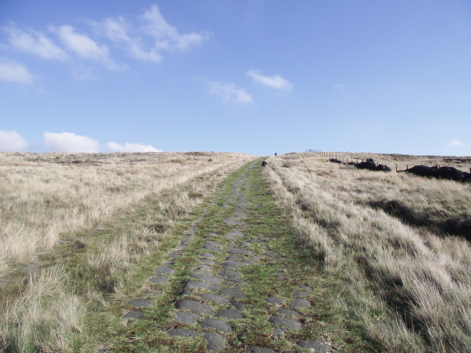 I say the so-called Roman Road, because some experts have disputed its Roman origin – the road probably follows the line of a Roman road, and is certainly medieval, mentioned in records dating back to the 13th Century. It runs straight as a die for over two miles, with a well preserved paved section and a central drainage channel. It also gives speedy access to Blackstone Edge, whilst keeping your boots clean as well.