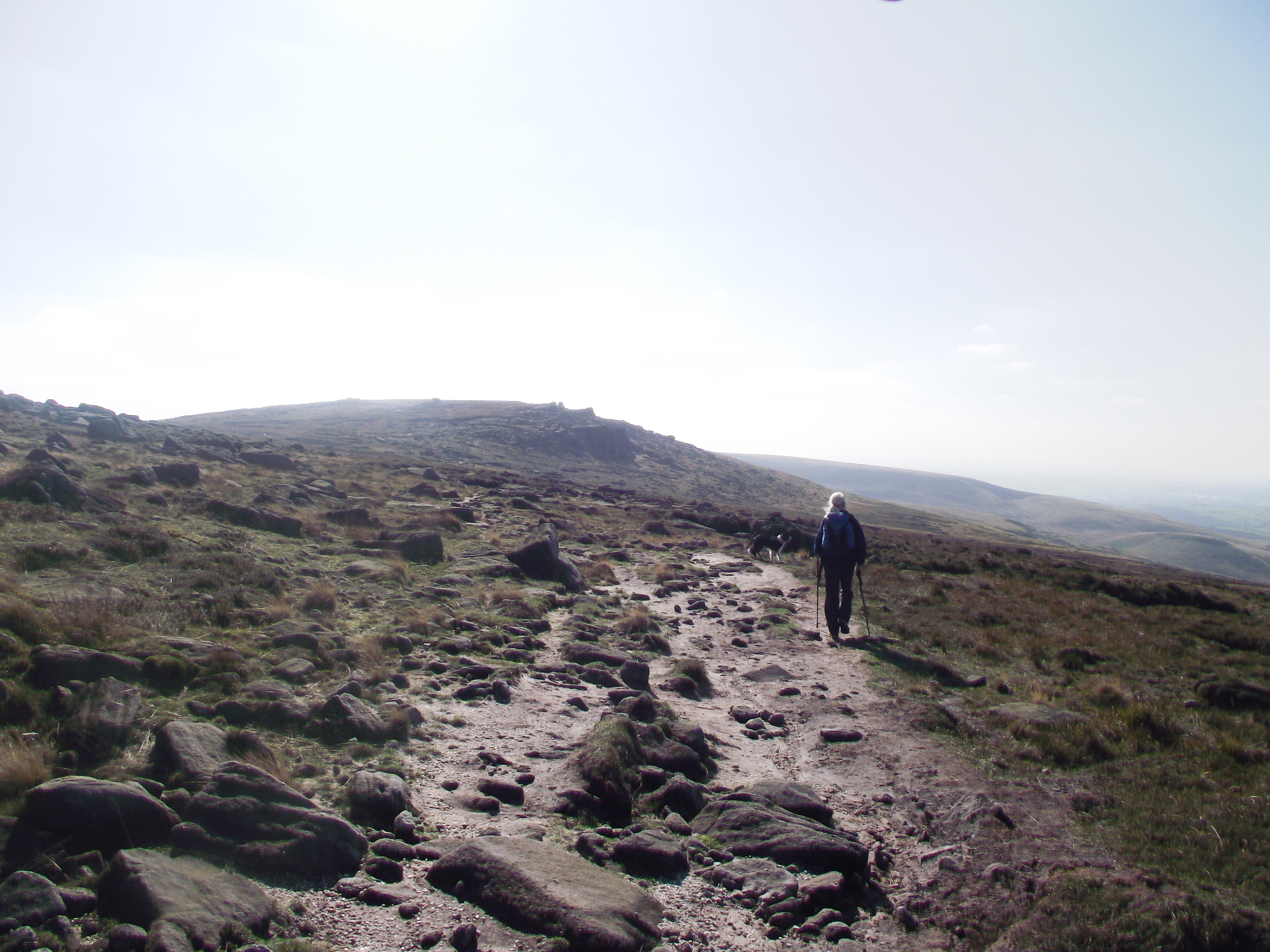 The crest of Blackstone Edge is a classic gritstone edge, with black gritstone crags and loads of nooks and crannies giving shelter from the wind – there is also a Trig Point perched on a boulder as an extra attraction. From Blackstone Edge the Pennine Way continues south to cross the M62 near Windy Hill, better known to motorists as Junction 22!