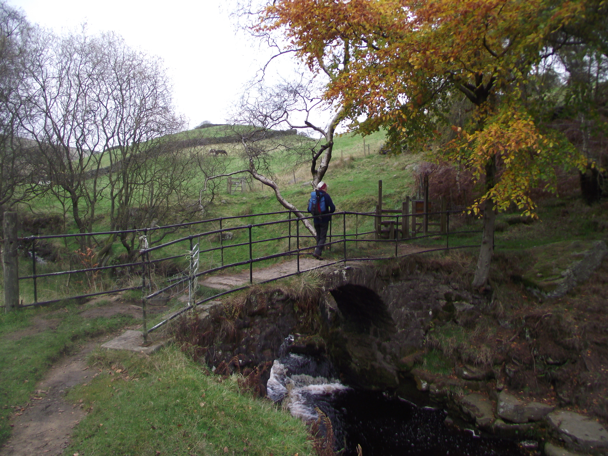 The outward section following the stream of Hebden Water was very much a woodland walk, with the autumn colours of the trees providing most of the interest.  Gibson Mill is now a National Trust property, with a café popular with walkers, but not today though – ‘midweek’ and ‘autumn’ meant ‘closed’ in this case, so we pressed on upstream.