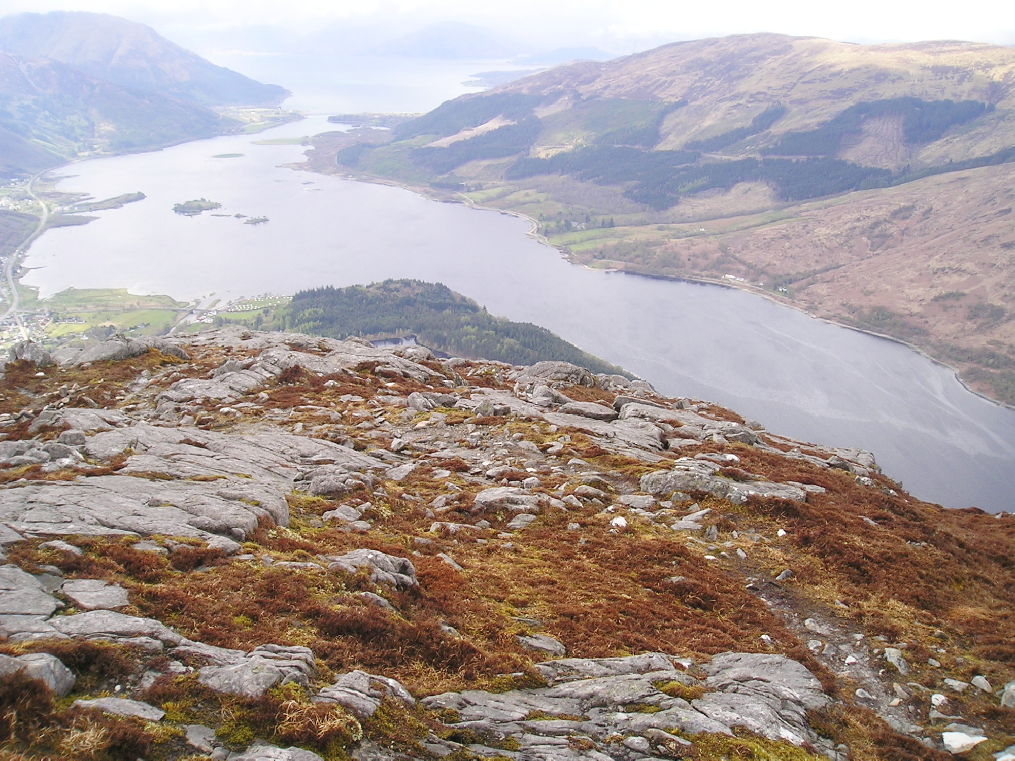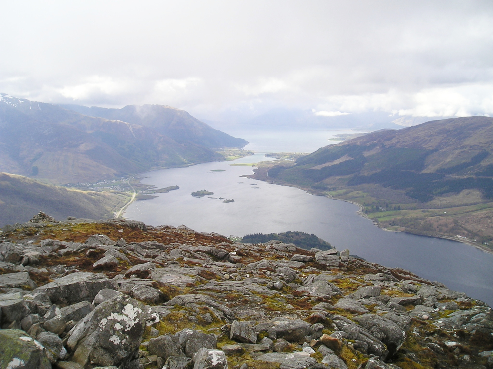 View from the summit, looking to the narrows of Loch Leven at the Ballachulish Bridge