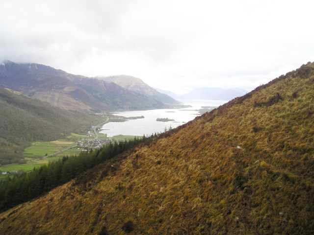 Last view of Loch Leven, looking across the top of the woods of Glencoe Lochan