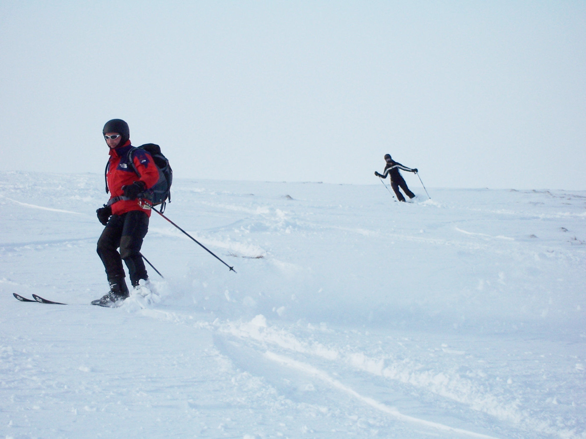 The author (left) skiing at Glenshee