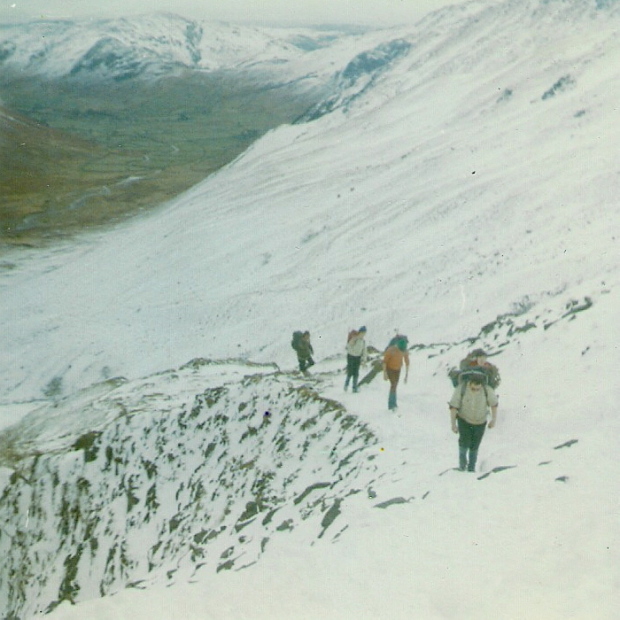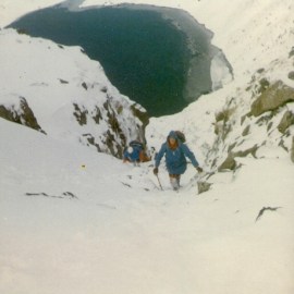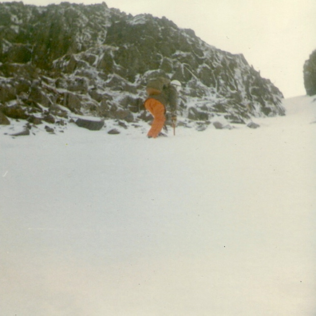 My mountaineering started in my teens with hillwalking then rock climbing, which in those days was the usual gateway to more serious stuff.  My first outing with a (borrowed) ice axe was in February 1969, and two months later four of us did the Snowdon Horseshoe for the first time, some of the route being under snow conditions – from the beginning I was hooked!