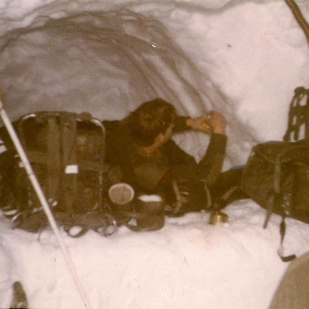 Inside a snowhole – surprisingly warm!
