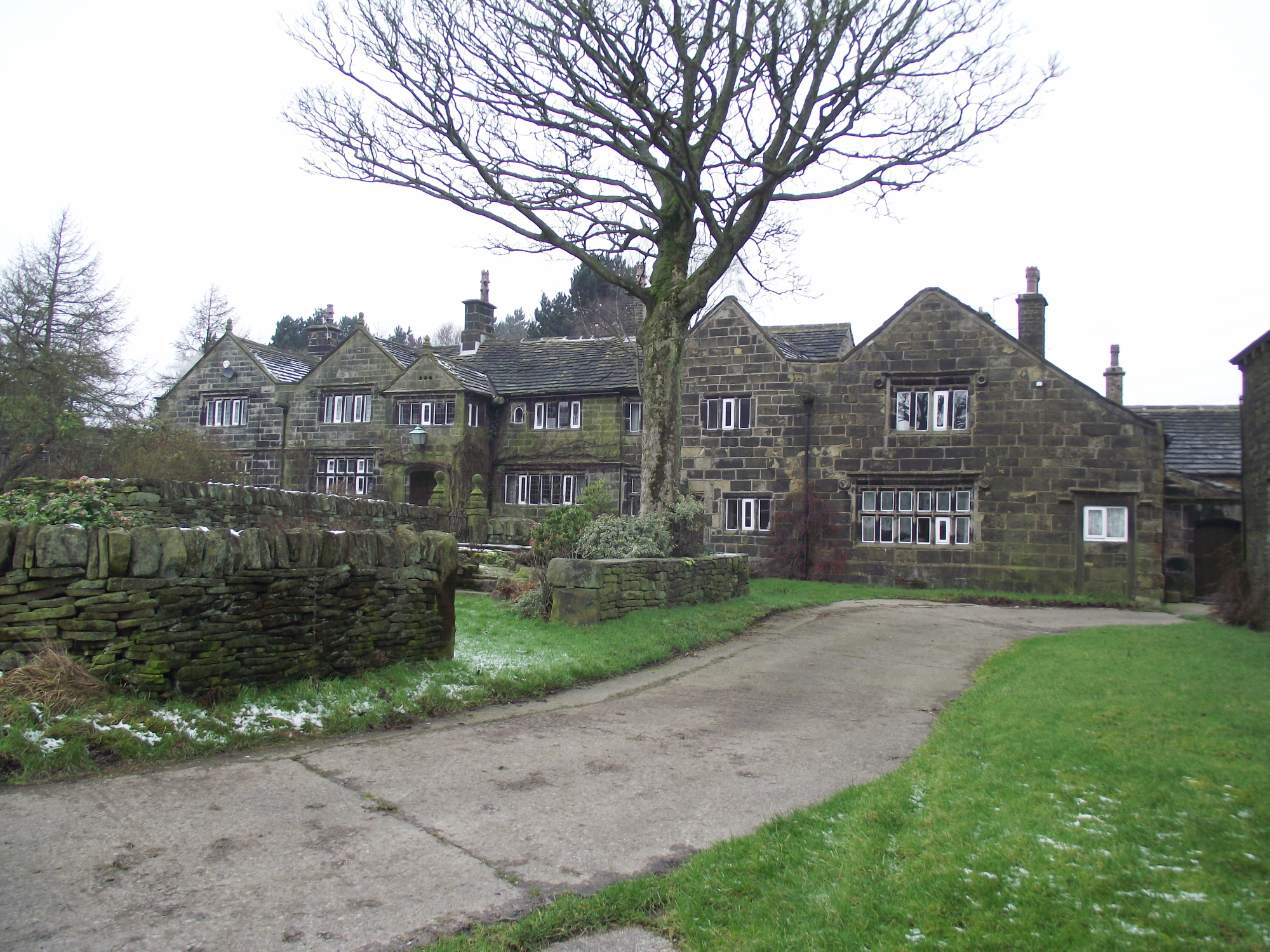 Pennine walking is a bit of an acquired taste, usually involving boggy and peaty uplands separated by deep valleys.  Today’s route didn’t really have any severe ups and downs, and the cold meant better going on frozen mud rather than liquid mud.  We set off from Ryburn Reservoir with good conditions underfoot but terrible light for pics.  Passing the impressive house of Upper Cockcroft Farm we took the track to Pike End to hit Blackwood Edge Road.