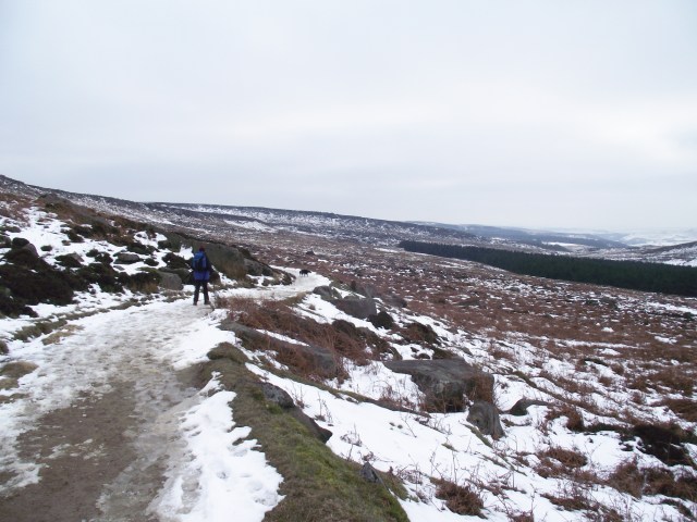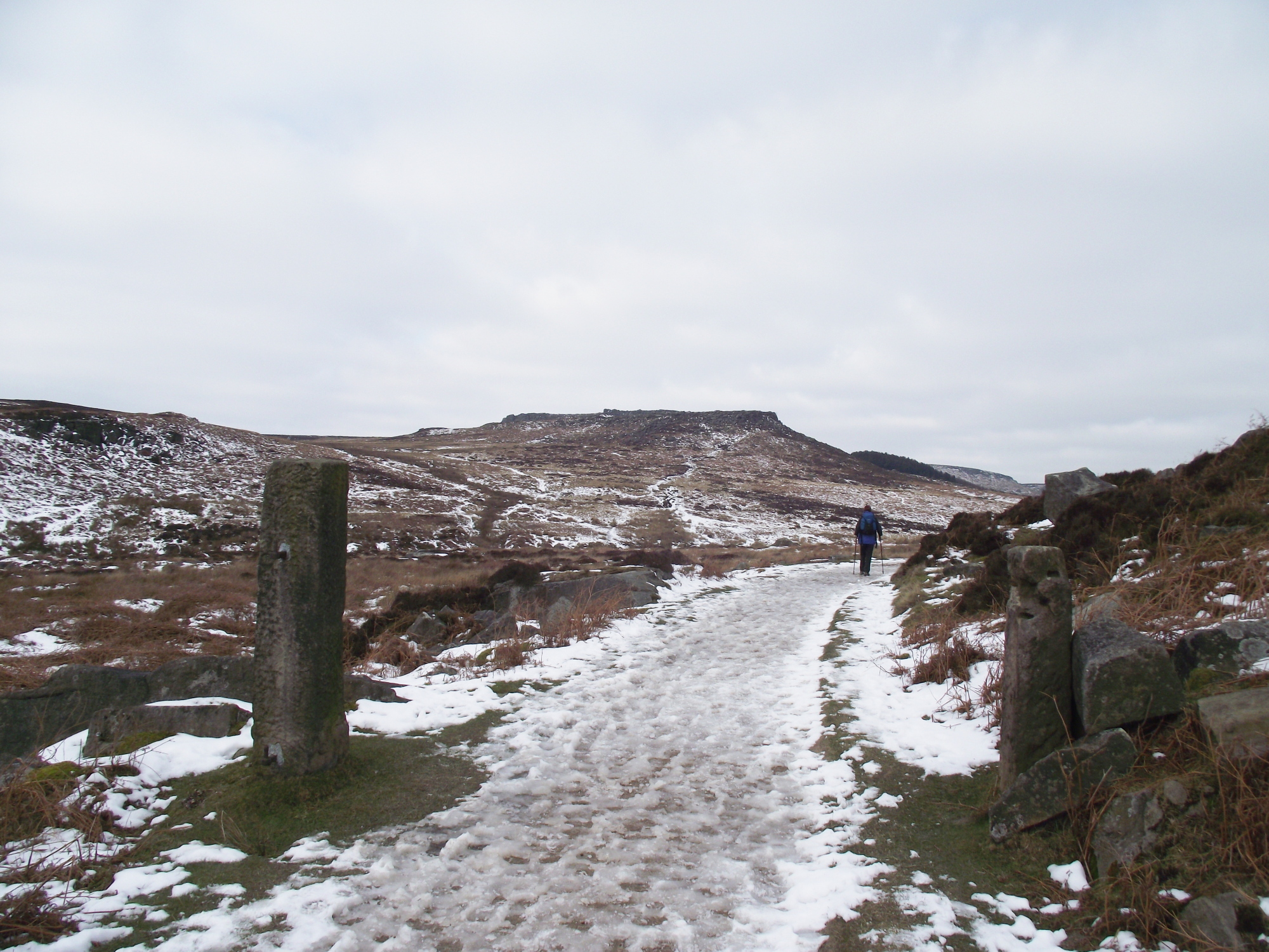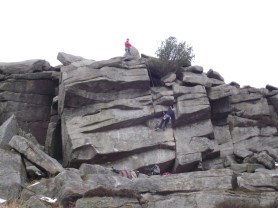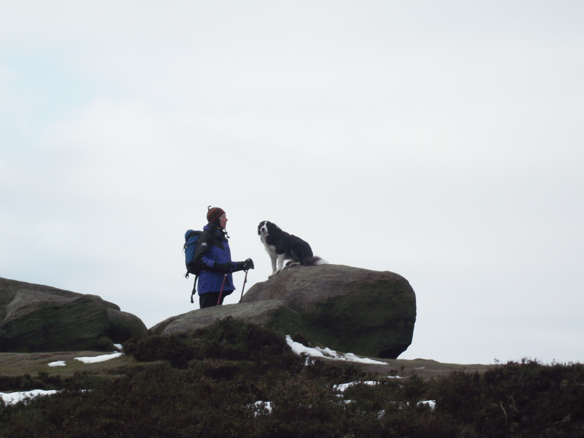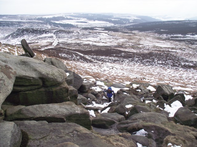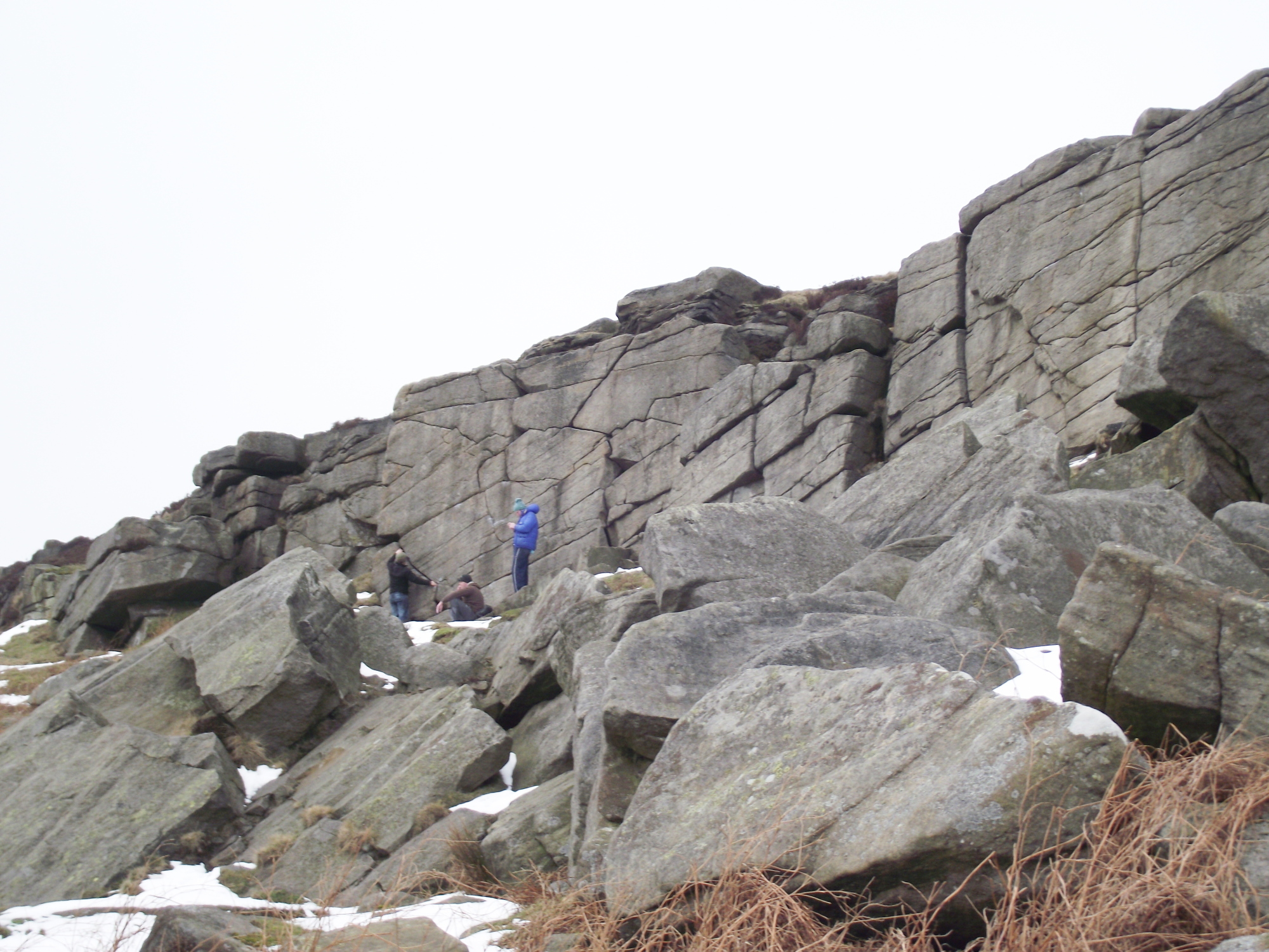 We carried on to Upper Burbage Bridge before returning down the Duke’s Drive. Burbage Rocks have their own history, at least as far as rock climbers are concerned – the rocks have been an important climbing area from the earliest days of the sport, and even in the cold conditions we encountered, a couple of groups of climbers were in action.