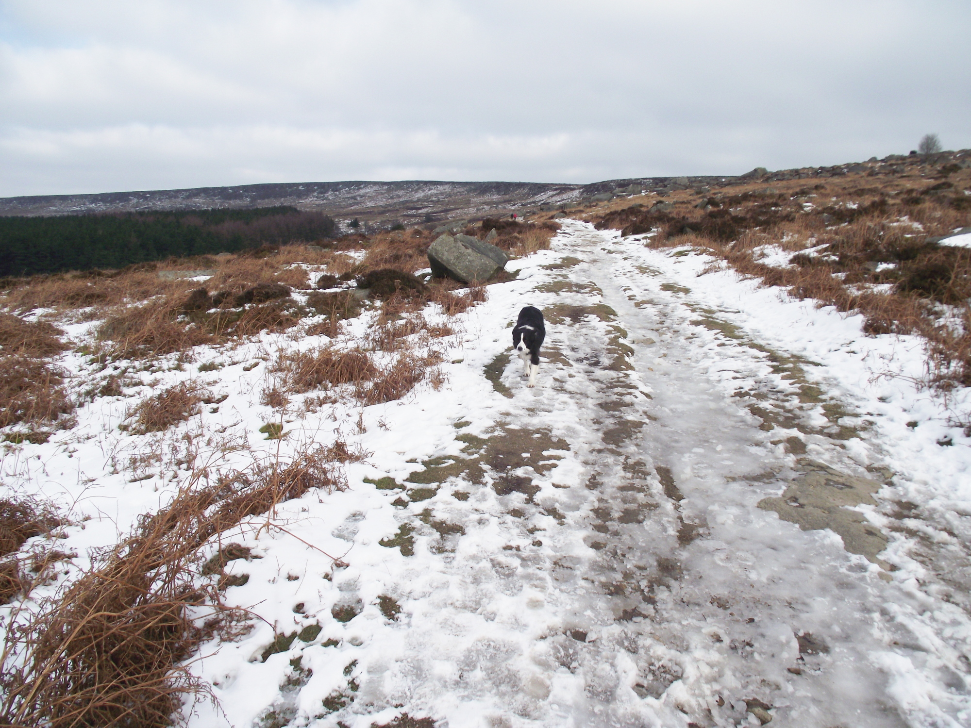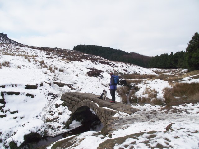 We stopped for food and a coffee by the 18th Century stone bridge below Carl Wark before hitting the first slope. I did the decent thing, and let Chris use the Kahtoolas – the Spiders were a better option than nothing for me, and ‘Mist’ seemed happy to get along with what nature had provided.