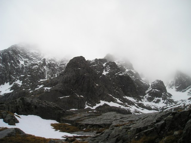 Bad weather on the cliffs of the North Face of Ben Nevis