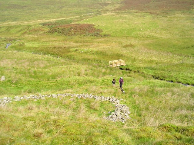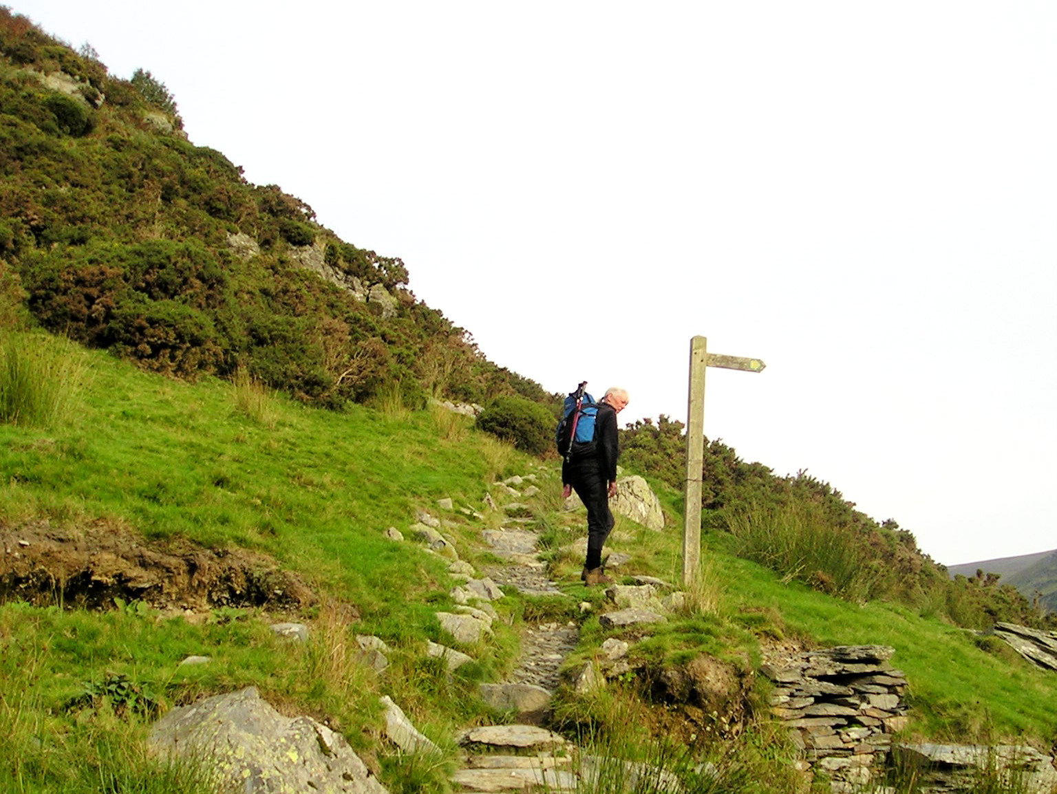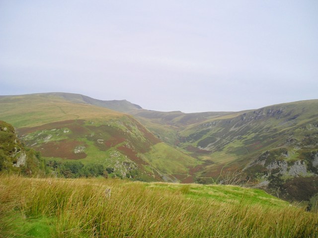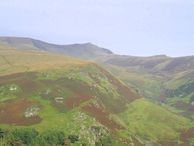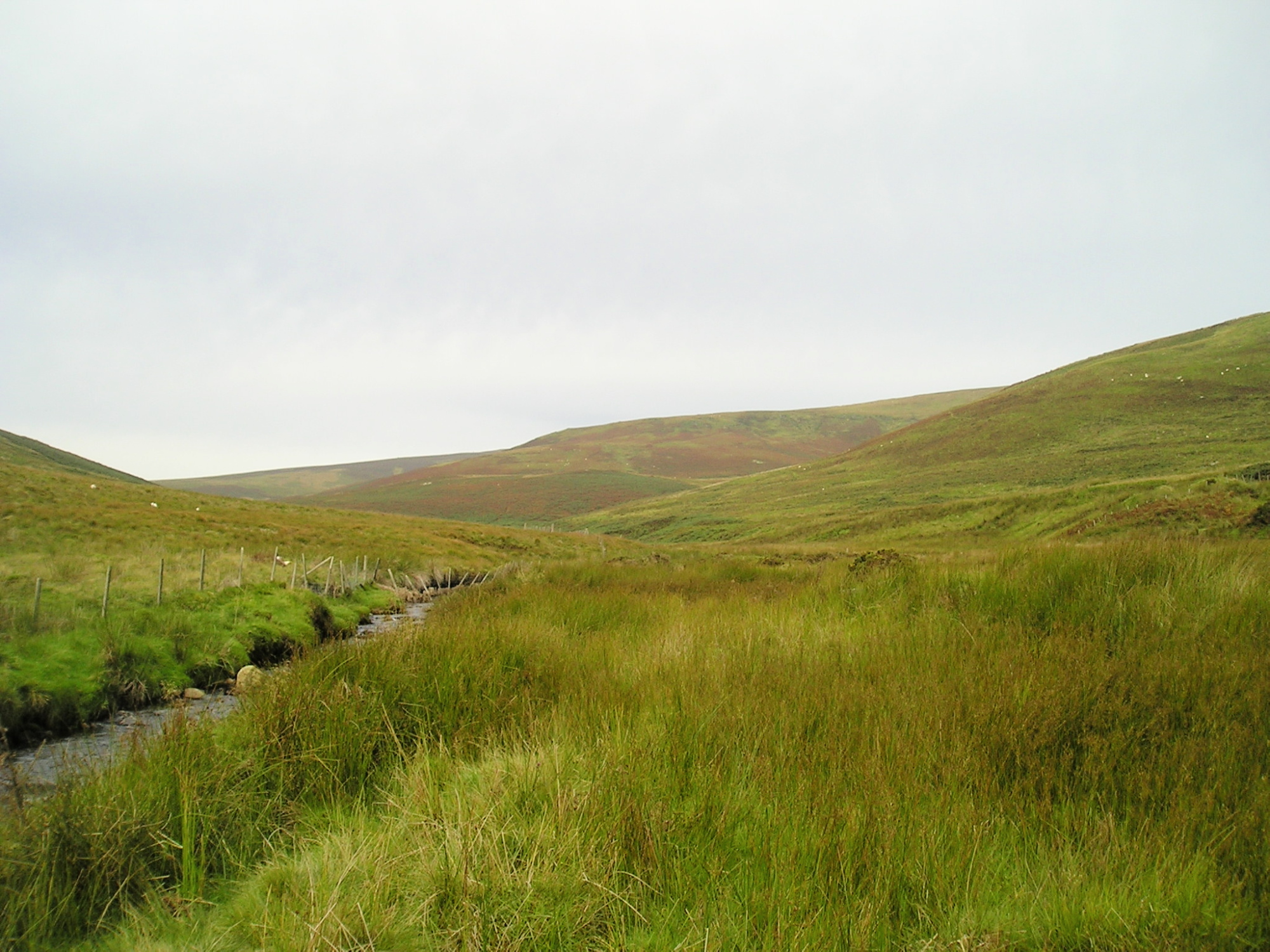 Having seen the falls, a visit to the top is equally irresistible as well as being surprising. The narrow, confined valley suddenly opens up into moorland, with wide expansive views to the Berwyns, one of the forgotten ranges of hills in Wales The highest of the Berwyn hills were less than 3 kilometres away from our route, but they didn’t seem all that high. A look at the map corrected that view – at 827 metres (2713 ft) they were higher than anything in the Yorkshire Dales or Peak District.