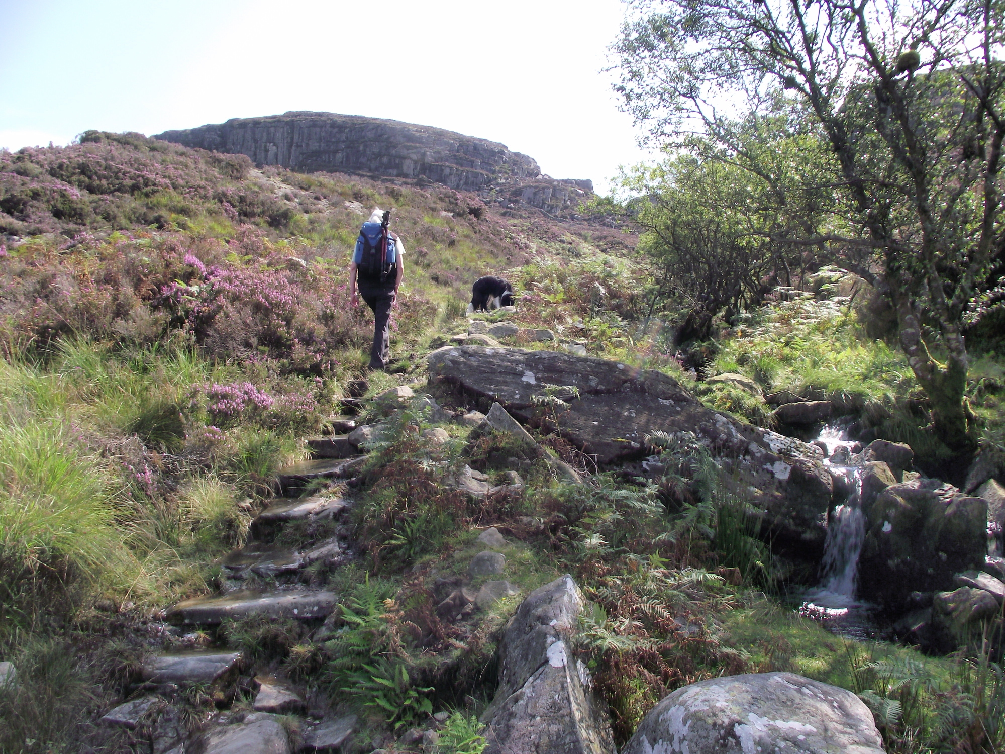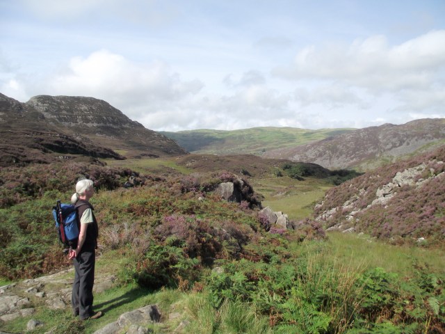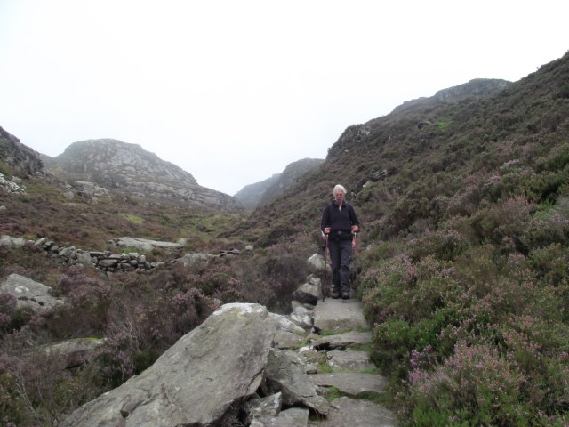 To the north the Rhinogs (or Rhinogydd in Welsh) are rocky and covered in dense patches of heather – trying to force a direct path though this stuff would be arduous and time consuming, but on the ‘Roman Steps’ route it had all been done for us.  The path wasn’t in fact engineered by the Roman Legions, but it is certainly old, a medieval pack-horse route that once linked Chester to Harlech on the coast.