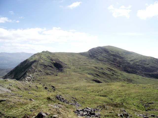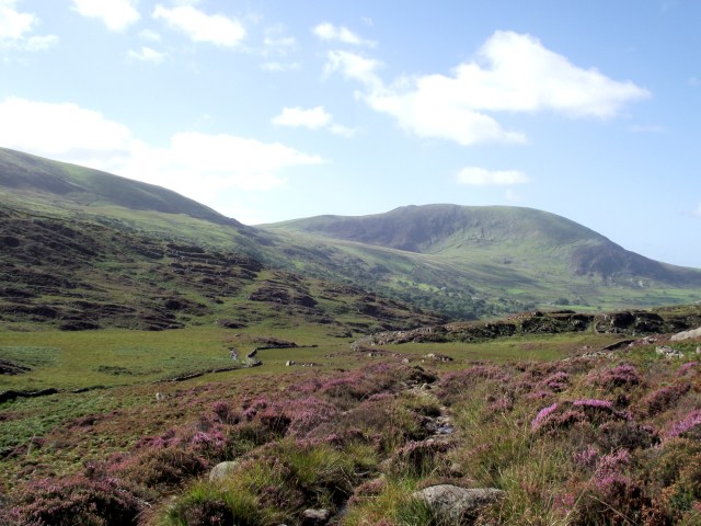 The route started by heading up the valley running between Rhinog Fawr and Rhinog Fach. At the col between the two peaks, the way to Rhinog Fach took the ‘full-frontal’ approach, heading straight up – a couple who were walking a shortened version of my route stared in disbelief as I pointed out the line of ascent, but they gamely tagged on behind as I set off upwards, but the going eased as height was gained, leading to a stony plateau.