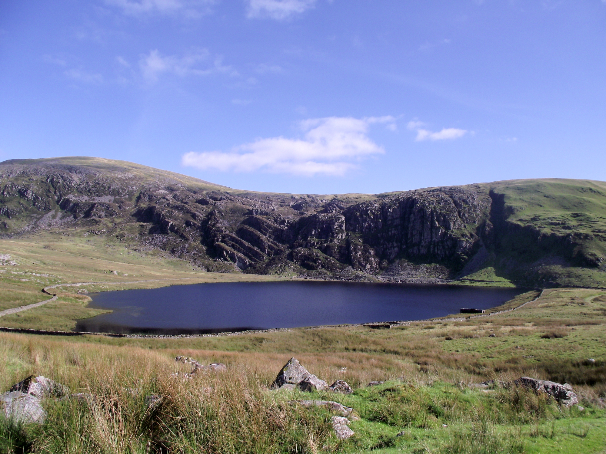 The undulating Crib y Rhiw Ridge led to Diffwys, with its stone Trig Point and a cracking view down to estuary of the Afon Mawddach. This was followed by a long descent to the Llyn Bodlyn reservoir – although man-made, the lake appears to be totally natural, and is completely in character with its surroundings.