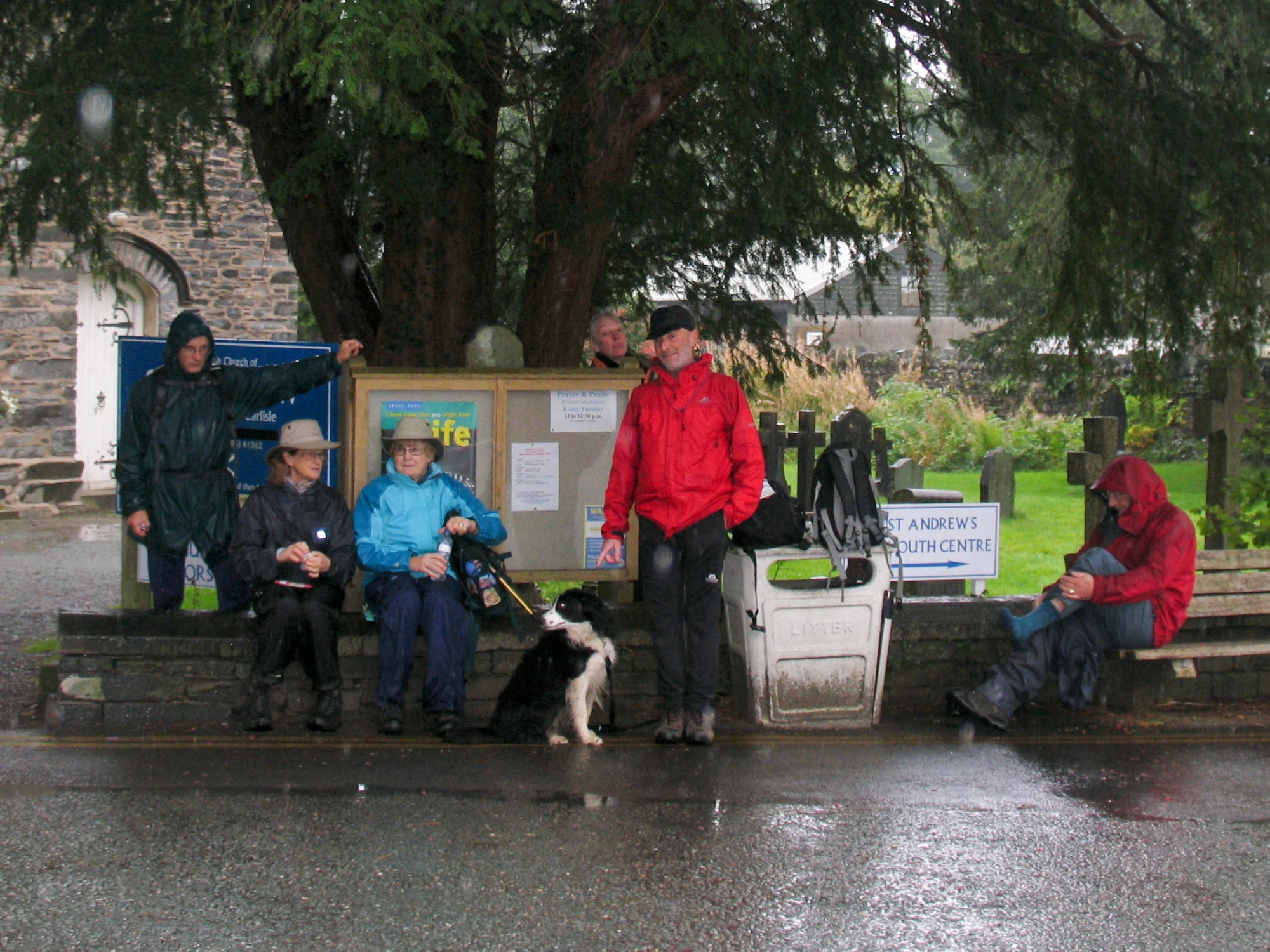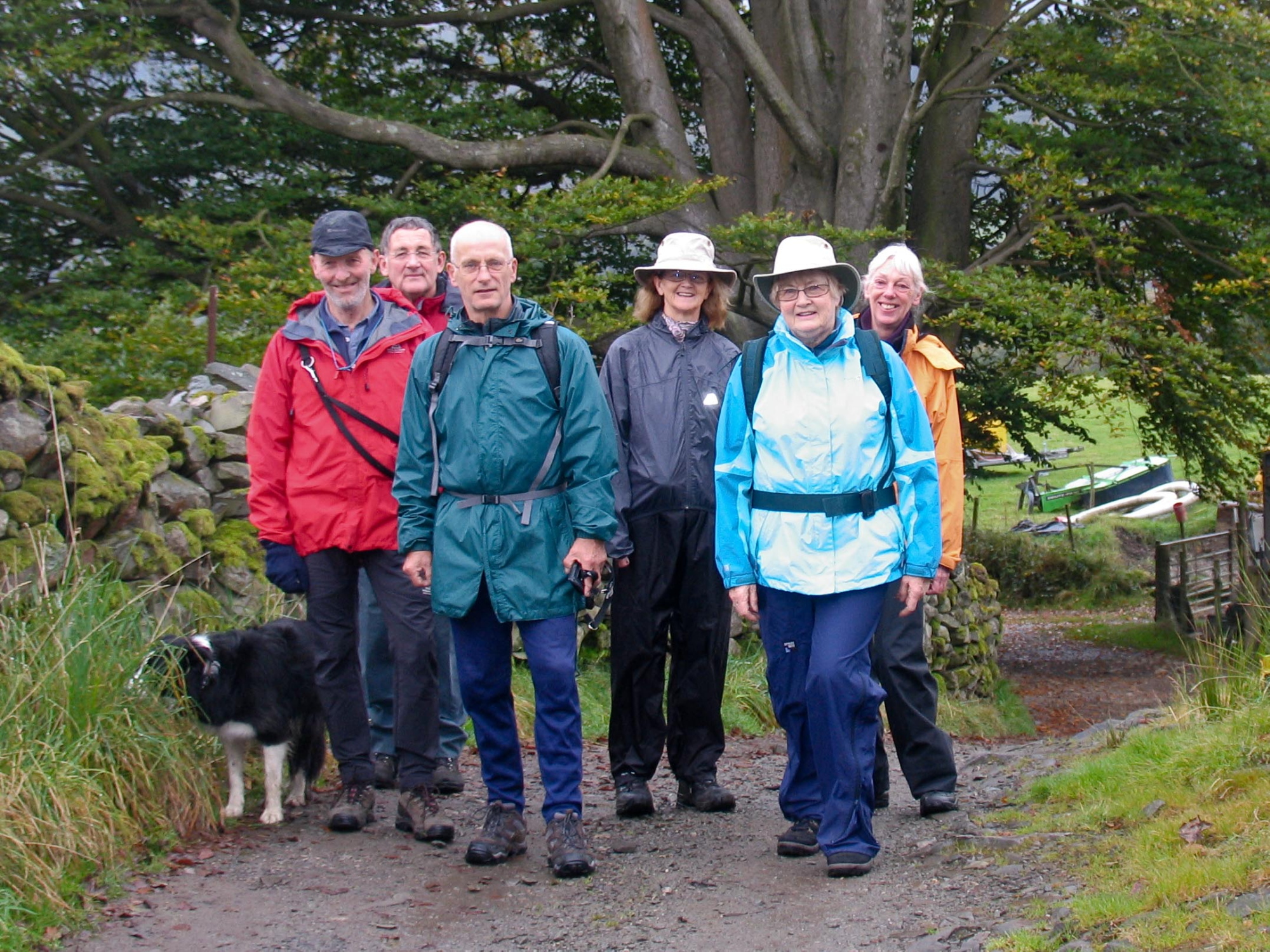 The happy throng gather for a damp walk from Torver to Coniston (JB)