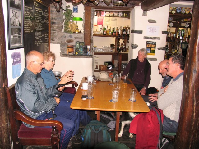 The weather made a high mountain day unappealing – when you’ve got to my age, you have had enough ‘high’ days in the rain to know what it feels like to be wet.  Instead, we walked from ‘Base Camp’ at Torver to Coniston village, ate our sandwiches under a tree, then sought refuge in the bar of The Sun Hotel.