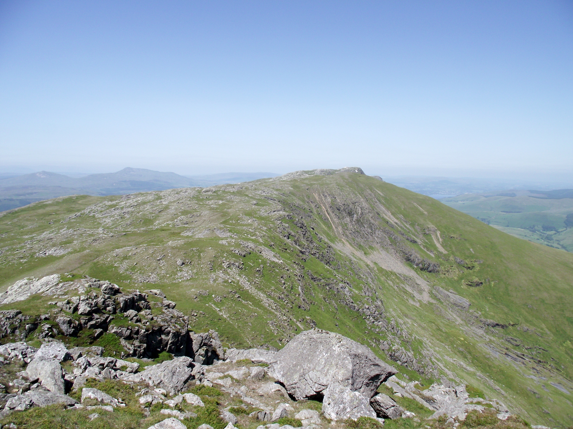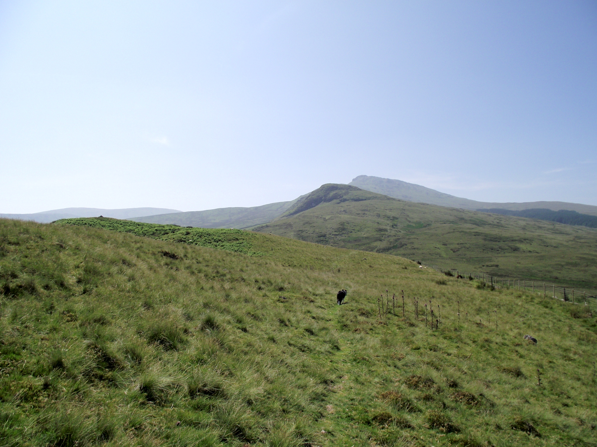The low part of the ridge stretching out ahead with Aran Benllyn in the distance