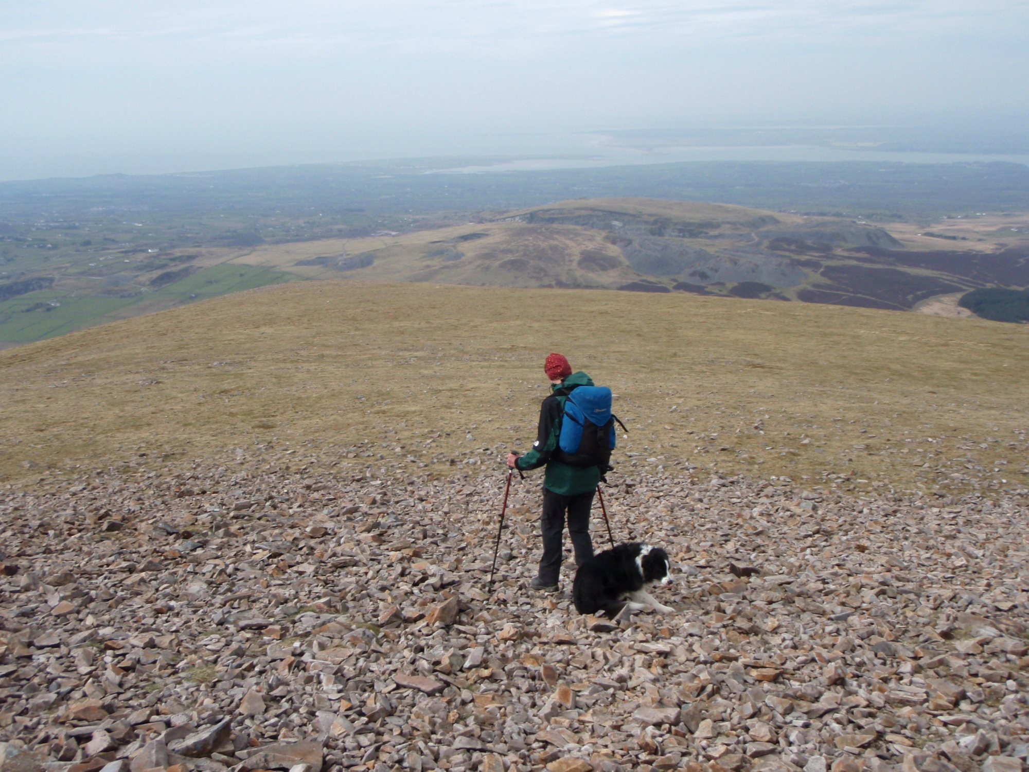 Above the forest now, with Yr Wyddfa (Snowdon) in the background