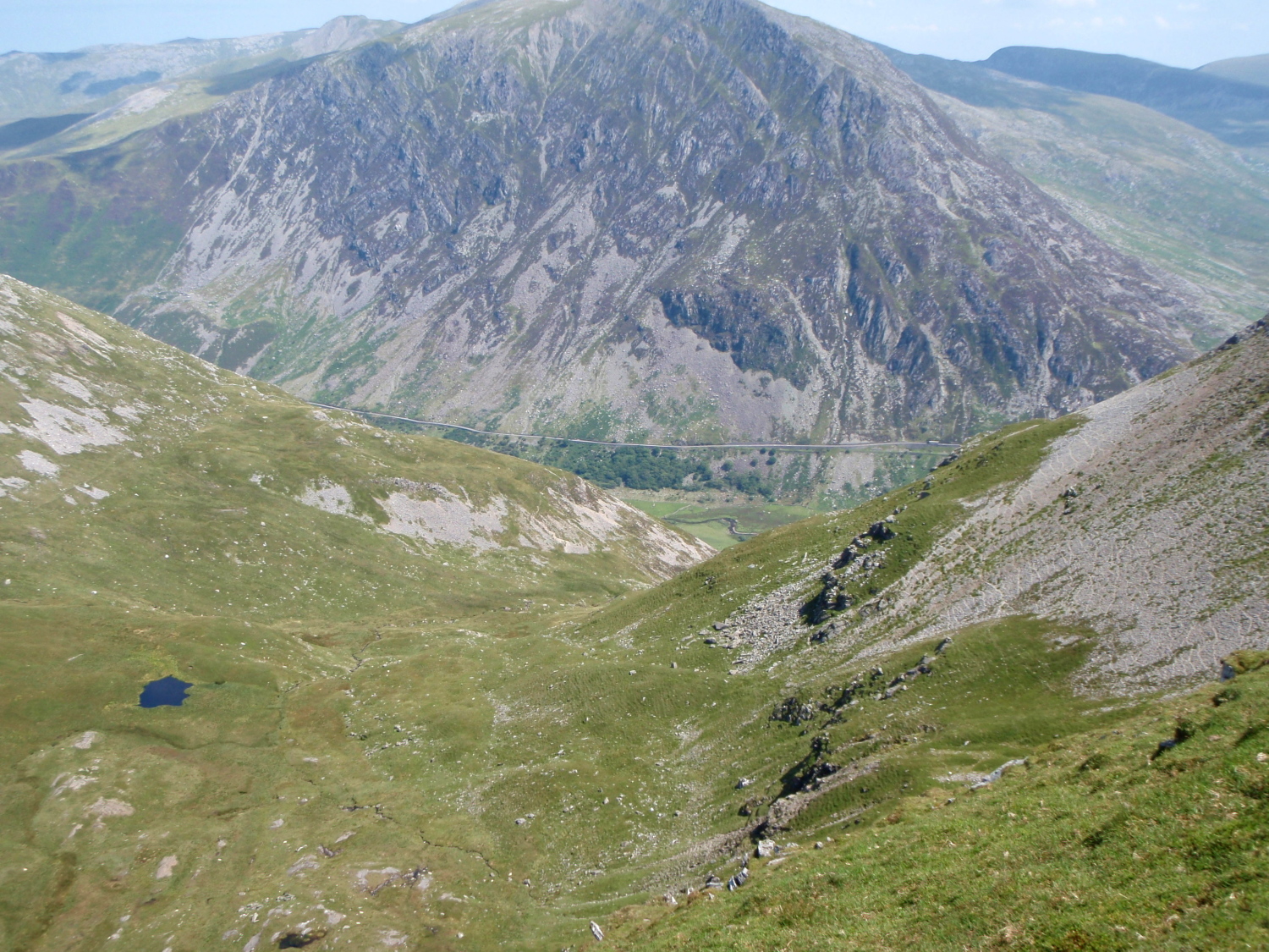Many a good day out on the hills of the Glyderau starts off from Ogwen Cottage, and this was no exception. I took the east side of Llyn Idwal, passing under the rock climbers’ crag of Idwal Slabs (see post #87) before heading up towards Twll Du (‘The Black Hole’ but usually called ‘The Devil’s Kitchen’ by we English). Although the ascent is fairly steep in places, the constantly changing views made it enjoyable.
