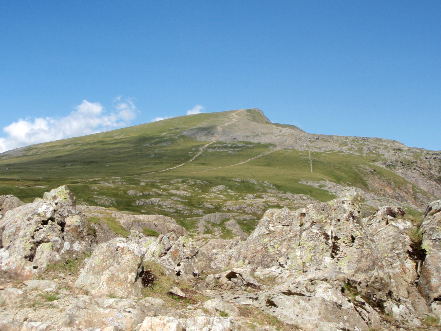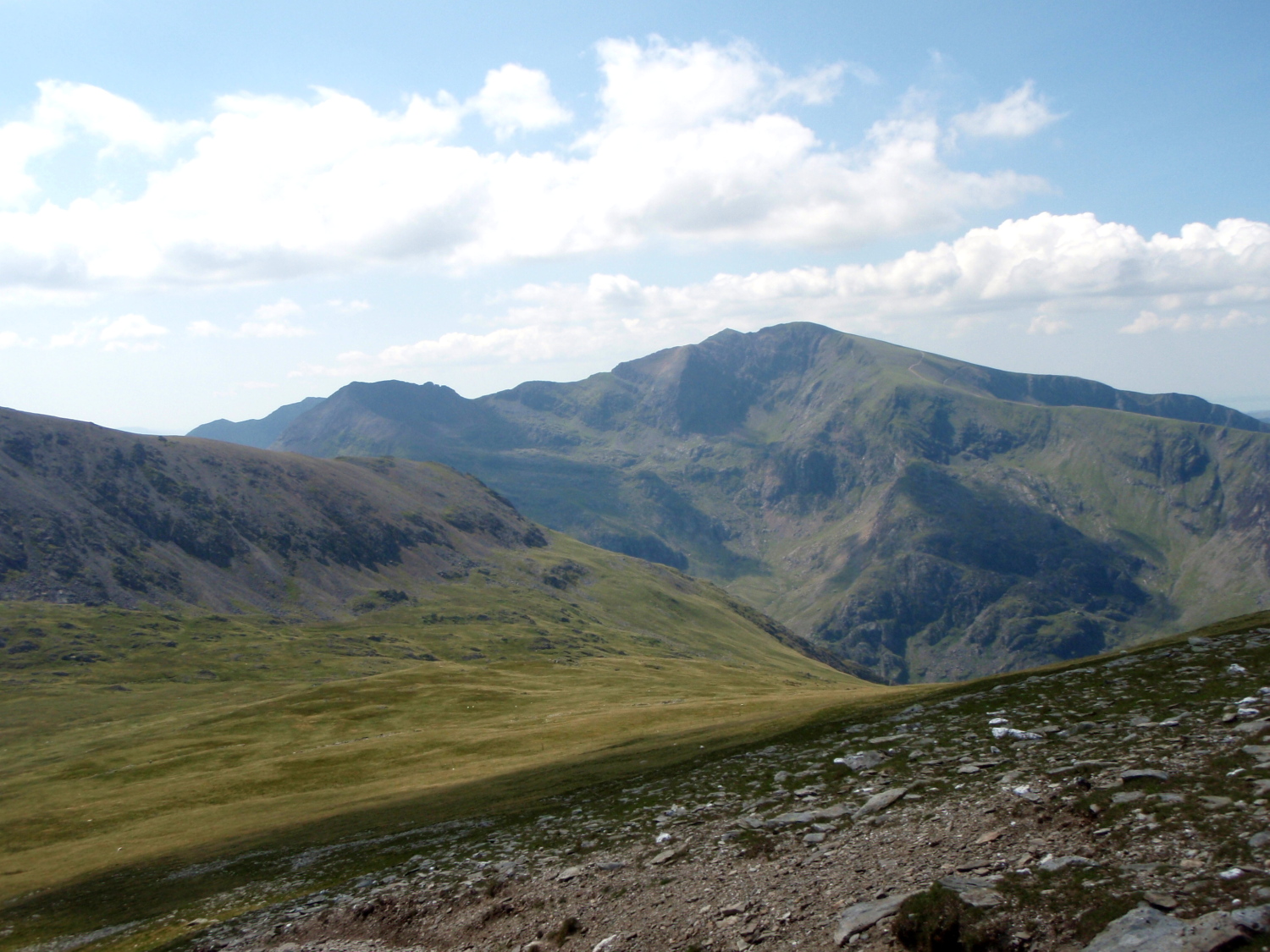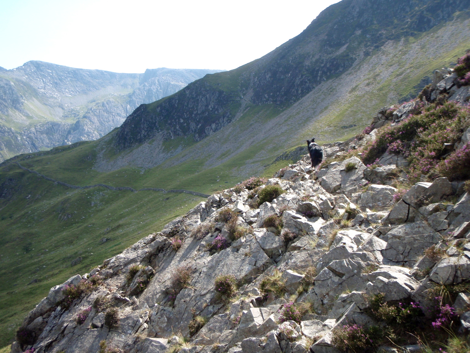 It was time for me to continue the route. The dog and I made good progress heading towards Foel Goch and Elidir Fawr (see post #90). I’d been here a couple of weeks earlier, helping with the marshalling of the Snowdon 7’s Race, where three of us had had a blustery and wet couple of hours on Foel Goch summit, but conditions today were brilliant. Elidir Fawr wasn’t on today’s menu though – I was looking for a path leaving the ridge, heading down to a high level path above the Nant Ffrancon valley.