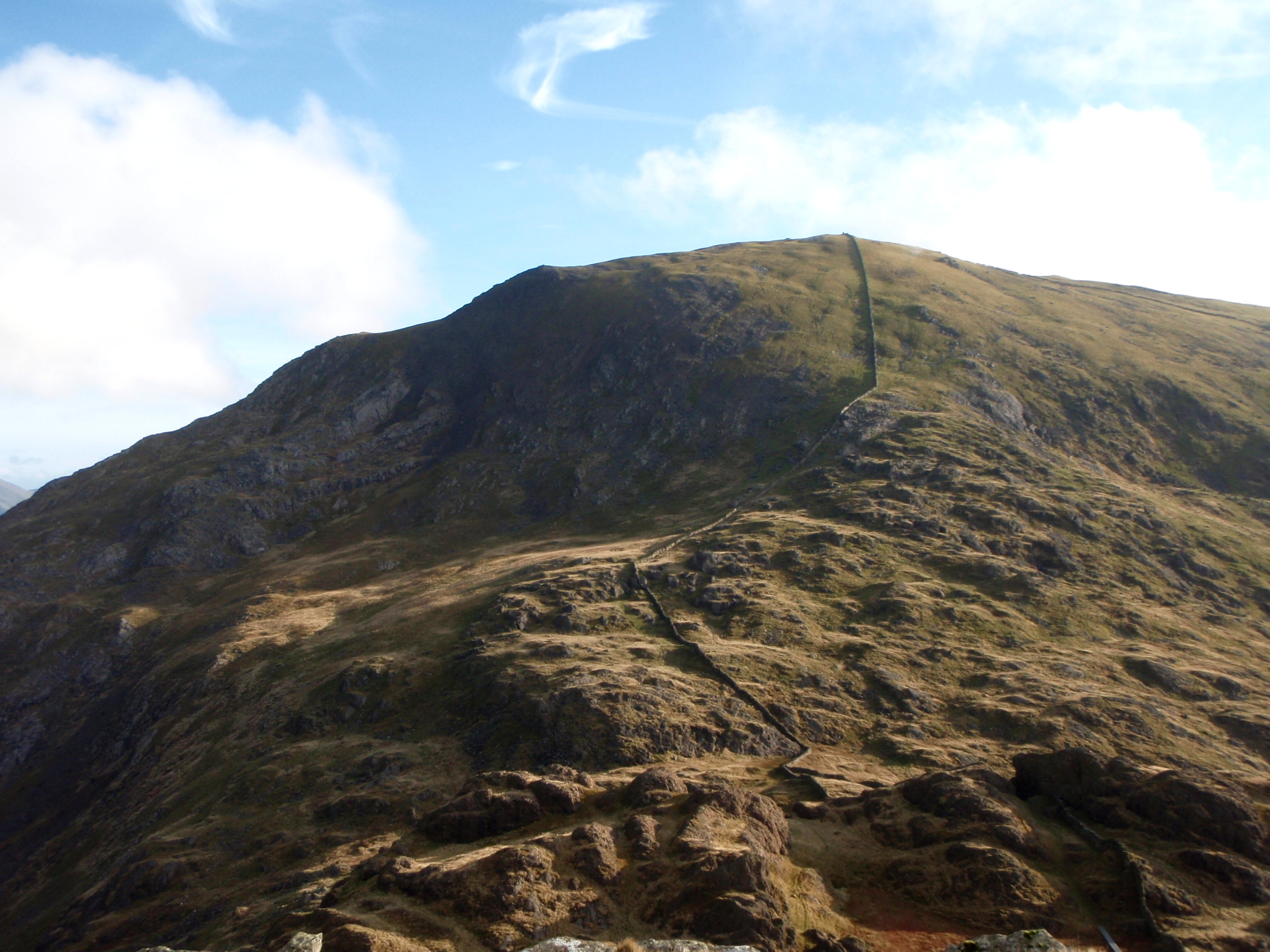 For some, the ascent of Moel Hebog would be a great day in itself, but there is a natural ridge running north over the next summits of Moel yr Ogof (Bare Hill of the Cave) and Moel Lefn (Smooth Bare Hill), and a crossing of all three peaks makes a great day out. The way off Moel Hebog is grassy, and no time was wasted down to the bwlch (pass). From there it was up through a cleft in the crags above, then on to Moel yr Ogof.