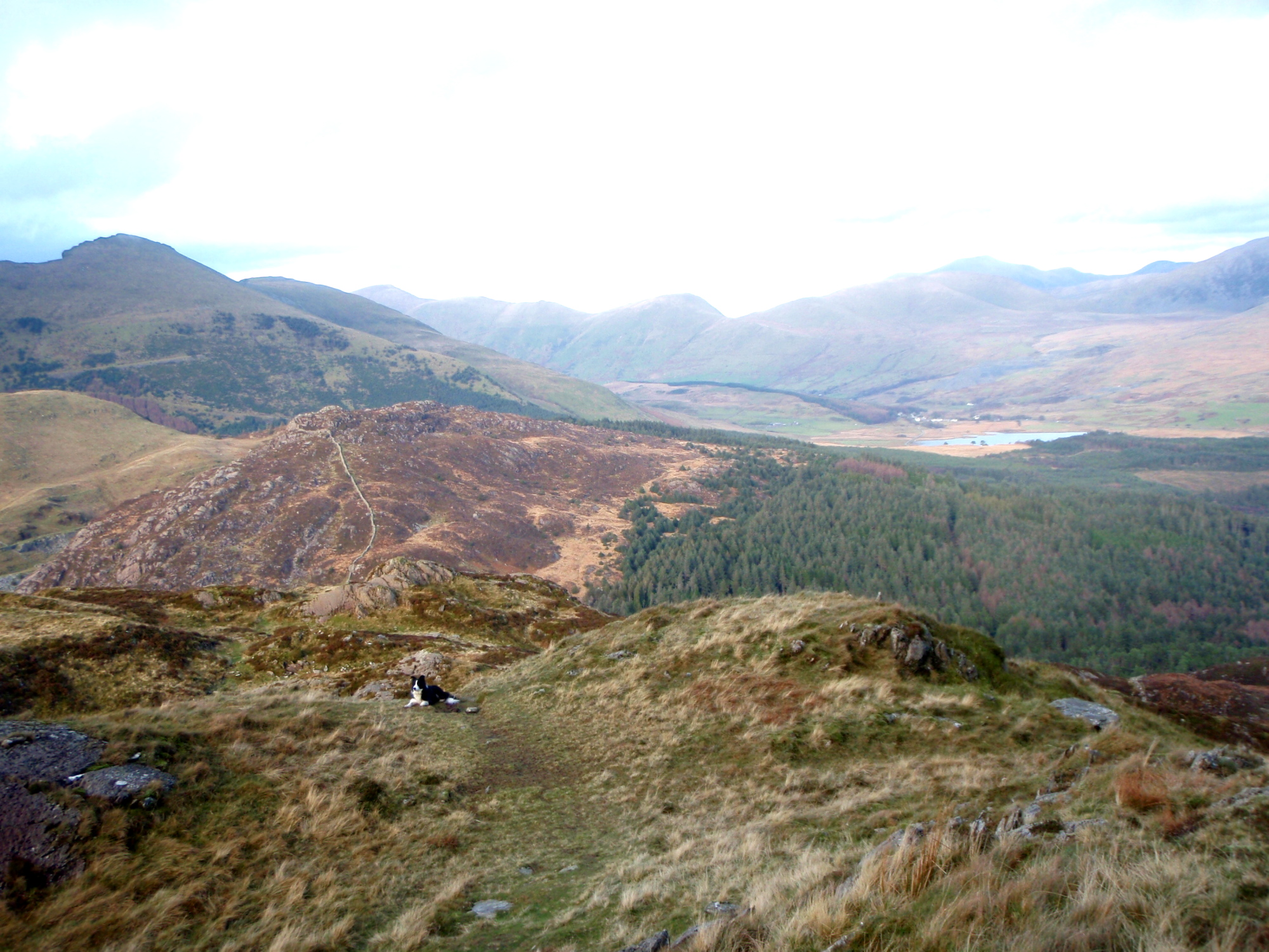 Moel Lefn followed in quick succession – rucksacks and big boots aren’t the first choice for hill-running, but I did keep up a fairly brisk walk for the only reason that it felt good, and the route certainly felt better than my last trip had. The height loss from Moel Lefn was 300 metres, bringing me down to the forest below. Forest trails aren’t my favourite, so I kept the pace up, though I was still lagging behind ‘Mist’ – guess who slept all the way home though (clue – it wasn’t the driver!).