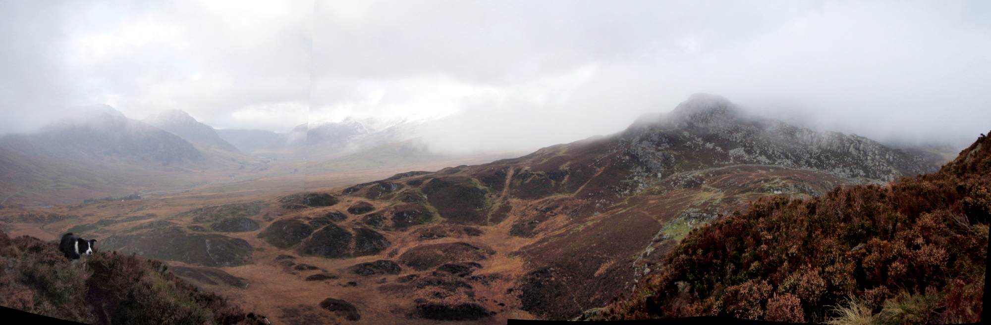I set out knowing that a retreat was possible. As well as the forecast of high winds later in the afternoon, the ground conditions were not good. Over the summer the mountains have been so dry that on occasions I’ve had to hunt out water for ‘Mist’ on the high plateau of the Carneddau – on this trip almost every step was a puddle, and boggy ground made progress even slower than expected, but despite this I made steady progress.