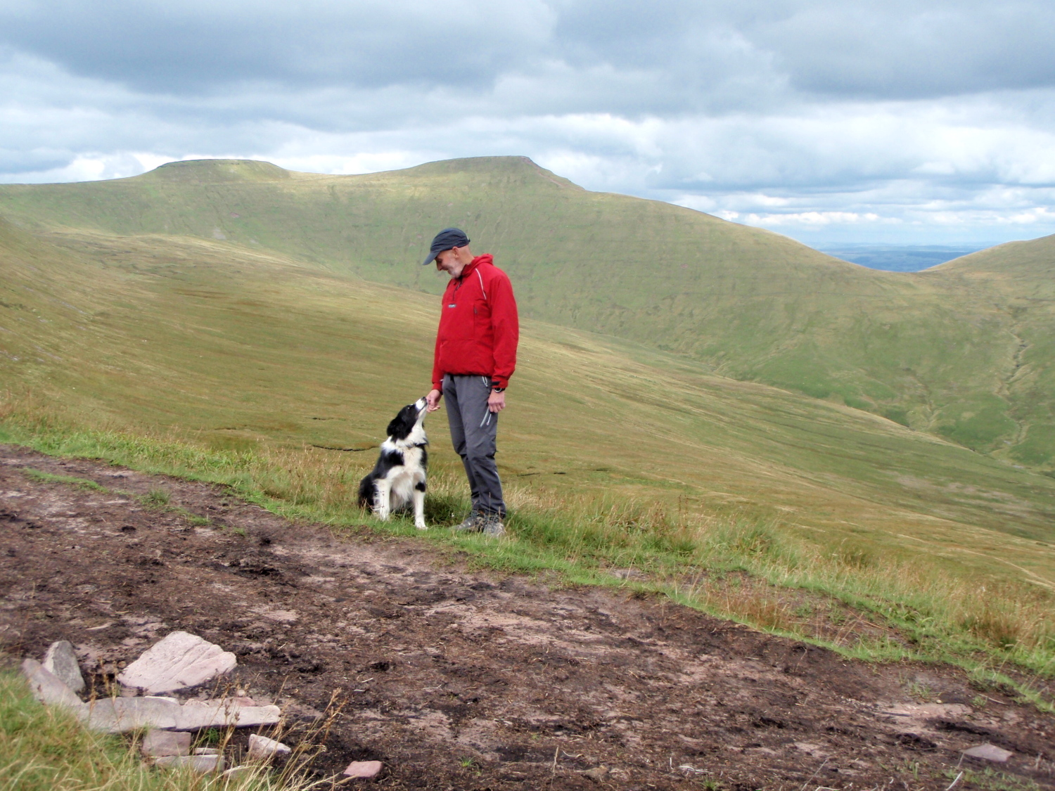 ‘One man and his dog’ – Pen y Fan (centre) and Corn Du (left)