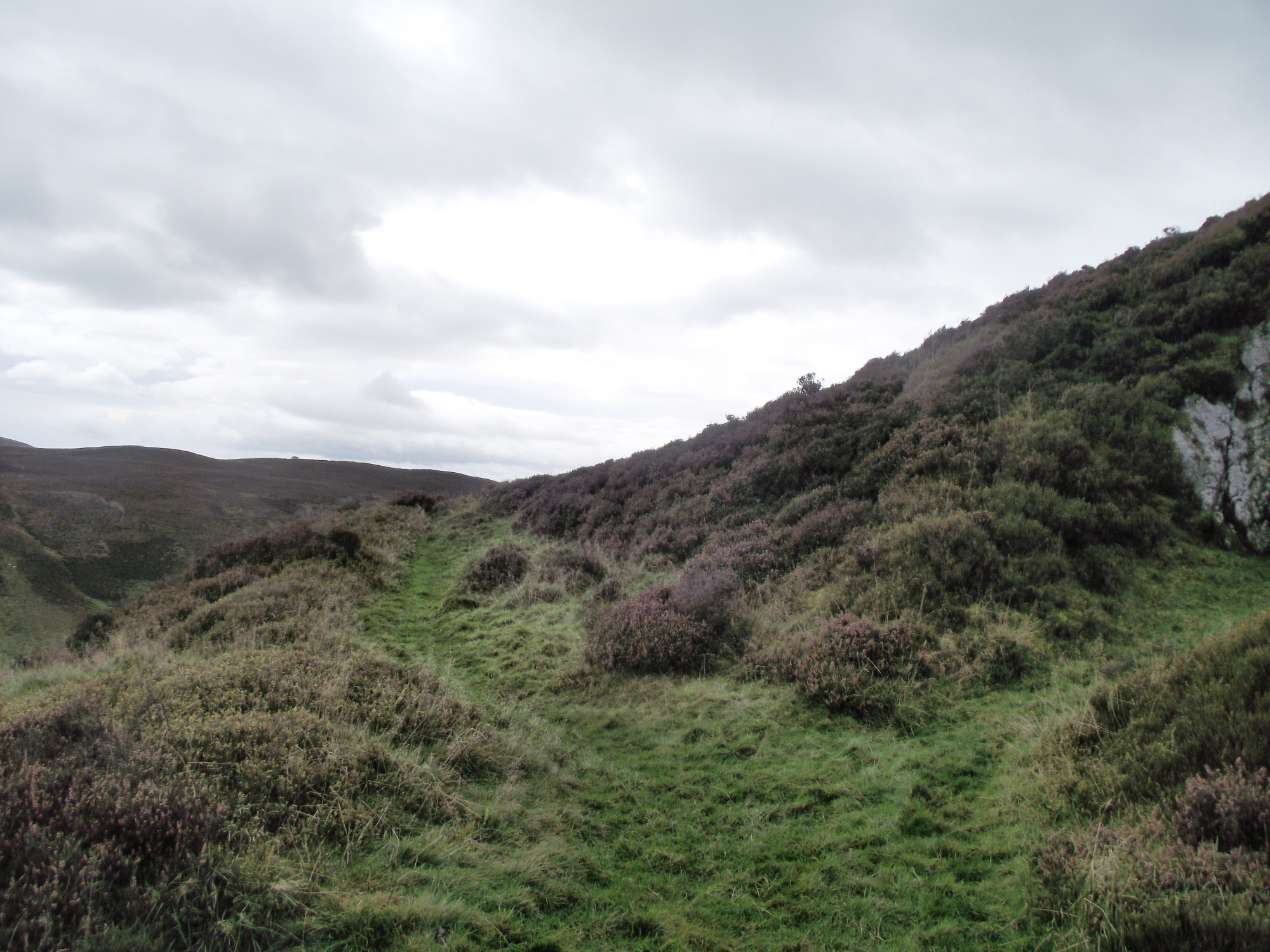The summit of Penycloddiau (‘The Hill of the Ditches’) has a better preserved Bronze Age burial mound, reconstructed in 2010. However, it’s the Iron Age ditch and rampart that impress the most, and I followed the line of the western ramparts on the return route.