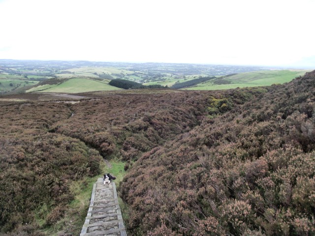 From Moel Arthur I followed the Offa’s Dyke Path to Penycloddiau. Offa’s Dyke was built in the late 700’s AD, making it almost modern, but the even more modern 176 mile path (designated as a national trail in 1971) doesn’t actually follow the Dyke at this point. It does, however, follow the most logical route along the crest of the Clwydian Range.