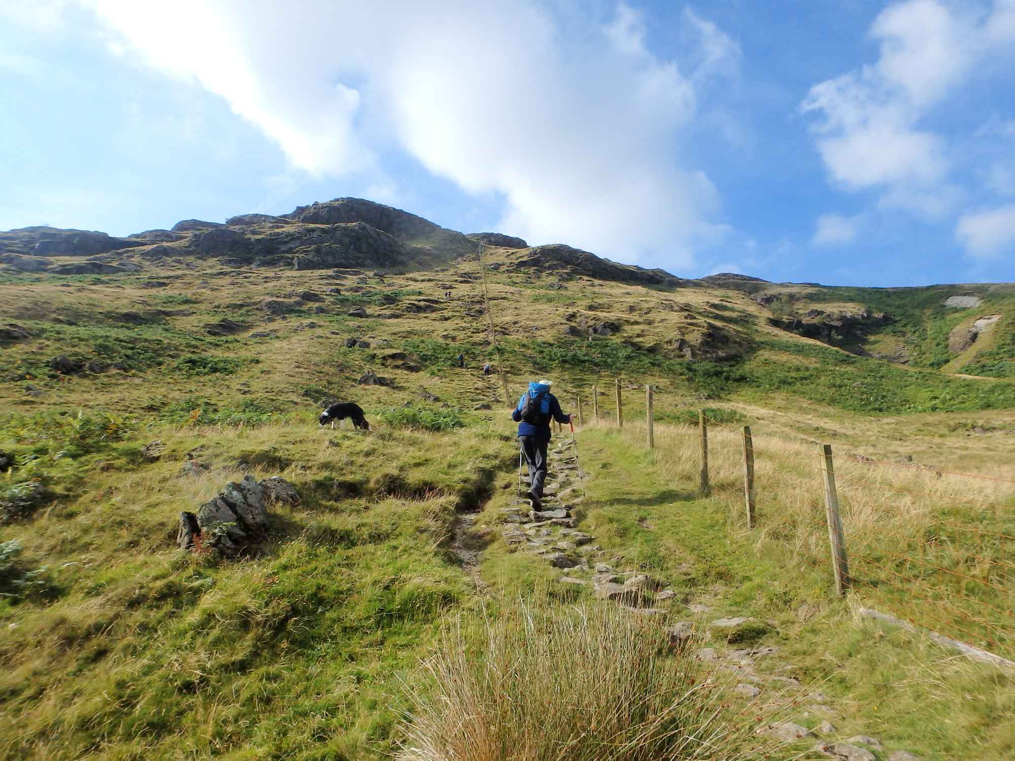 This trip was to Great Gable from Honister. Our route was a bit of a cheat in a way, because the start point is at about 360 metres altitude. The last time I had been on Great Gable I had been leading a walking group for a holiday company, and we had started down in the valley in Seatoller, about 230 metres lower – there’s a lot to be said for this cheating lark! The Honister option gets straight to work though, with a steep rocky start.