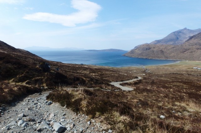 The walk in is short by standards, with a total of 10kms there and back, though surprisingly for a low-level walk it has a total height gain of nearly 400 metres.  The previous night I had spoken to a fisherman at Elgol who told me how his uncle had built the rough track from Kirkibost to Camasunary – ‘Uncle’ had been a Colonel in the Royal Engineers, and apparently had great fun blasting the track through solid rock, but the track has stood the test of time and is the most logical way into Camasunary Bay other than going around the coast.