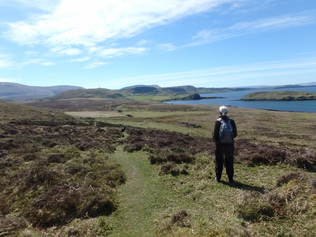At the bothy, we stayed long enough to eat our ‘sarnies’ and have a brew of coffee, and we were lucky enough to meet Bill, the bothy custodian, who had come out for an inspection visit.    Views out to sea were amazing, with the Outer Hebrides visible to the north west, and out to the east was Wester Ross, our next destination on the mainland where we would be heading in a few days.