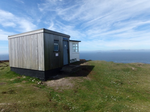 A few days later we were at the far north of Skye to walk out to ‘The Lookout’ at Rubha Hunish Point.    As the name suggests, the bothy was previously a Coastguard lookout, and when it became redundant it was taken over by the MBA.  The walk is different in character to the Camasunary walk – instead of the majesty of the Cuillins we had views of moorland, sea and big skies.