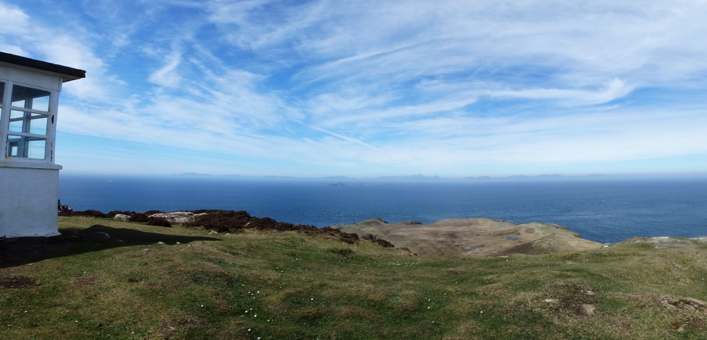 Just visible to the north west are the distant islands of the Outer Hebrides ….