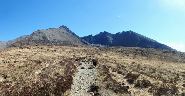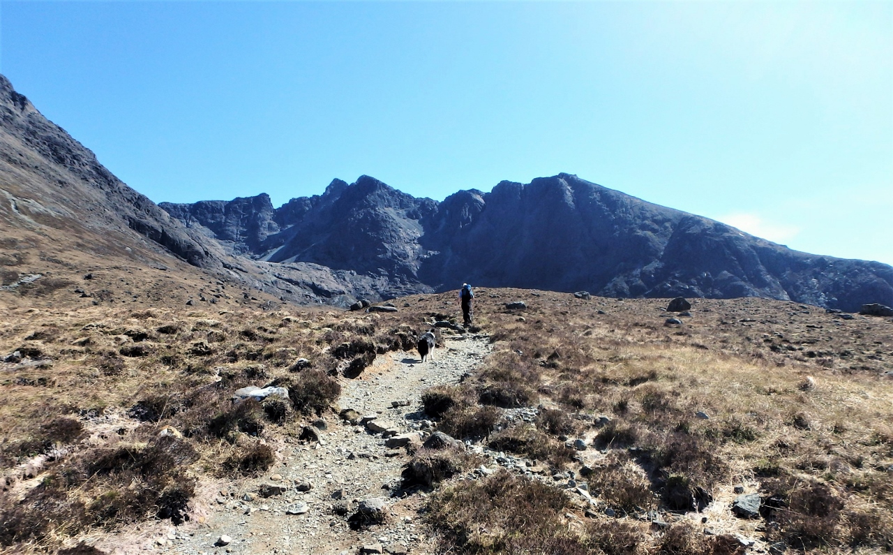 Getting up onto the Main Ridge of the Cuillins generally involves some fairly hard-core rock climbing or mountaineering, and my missus would be the first to say that she doesn’t ‘do’ hard-core! However, there’s lots to go at that doesn’t include the risk of sudden death, but still gives the buzz of being somewhere special. One such place is Coire Lagan above Glen Brittle.