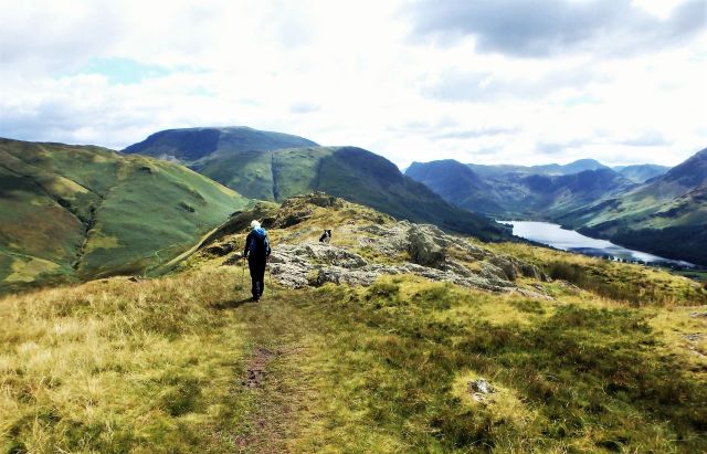 ‘A hill that doesn’t get the pulse racing’ is perhaps a good description of Rannerdale Knotts, but we were, after all, just looking for a good dog walk with a view and this ticked the boxes. The hill does have the advantage of being surrounded by other, higher mountains though, with good views over to Buttermere and to the Grasmoor Hills, my destination for the next day.